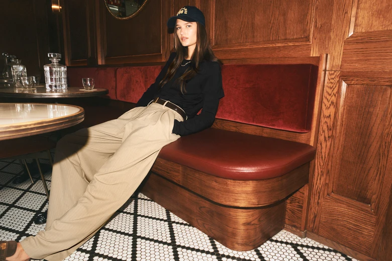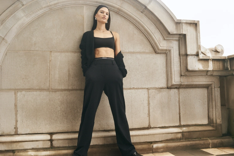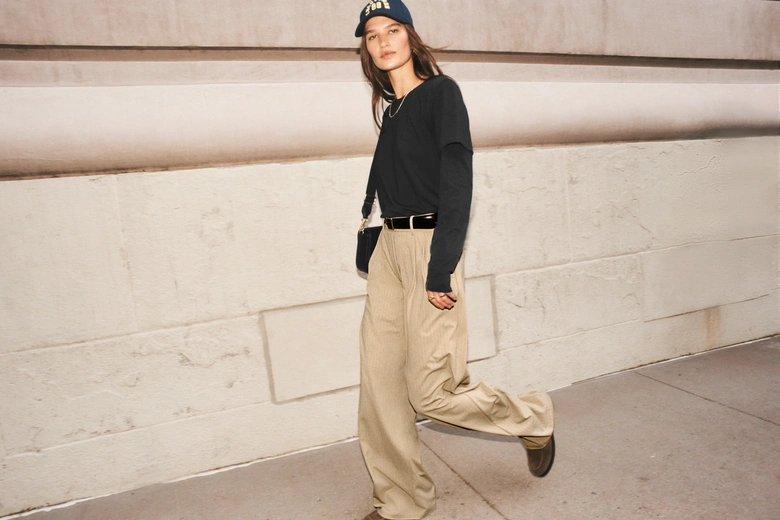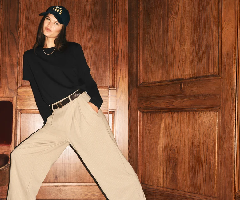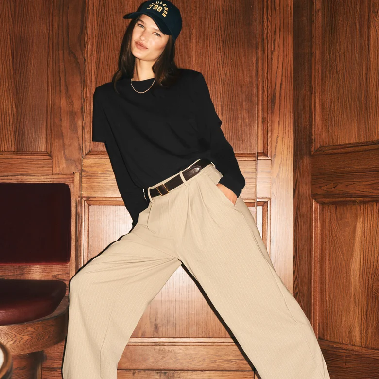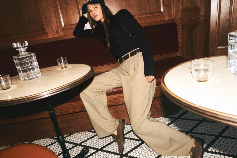ヒップから太ももにかけてゆとりを持たせ、ワイドでドレープ感のあるシルエット。ブランチからボードルームまで、洗練されたリラックス感を演出している。