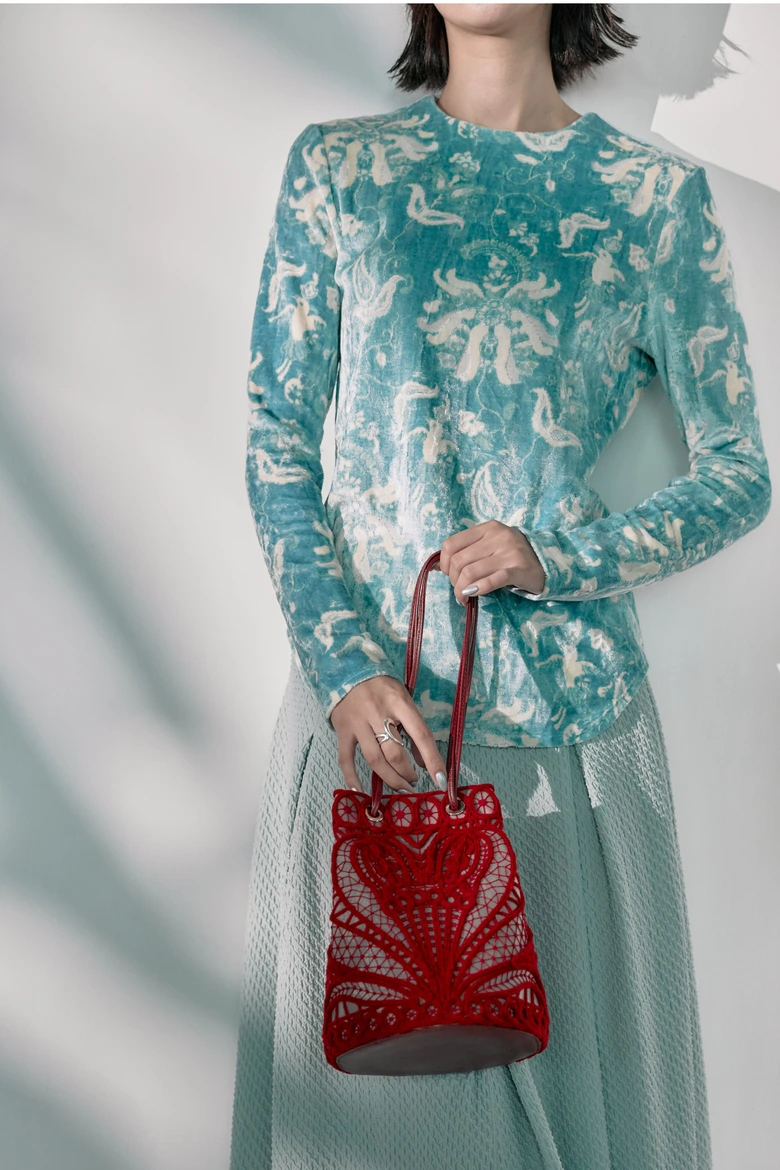 本コレクションは、今シーズンの<Mame Kurogouchi>のテーマである「カタチ」に着想を得たもので、コンタクトレンズからインスピレーションを受けたカラーを用い、<STUDIOUS>仕様に再解釈したデザインが特徴だ。日常のスタイルにも自然に馴染み、フォーマルなオケージョンにも対応する、洗練されたアイテムが揃う。