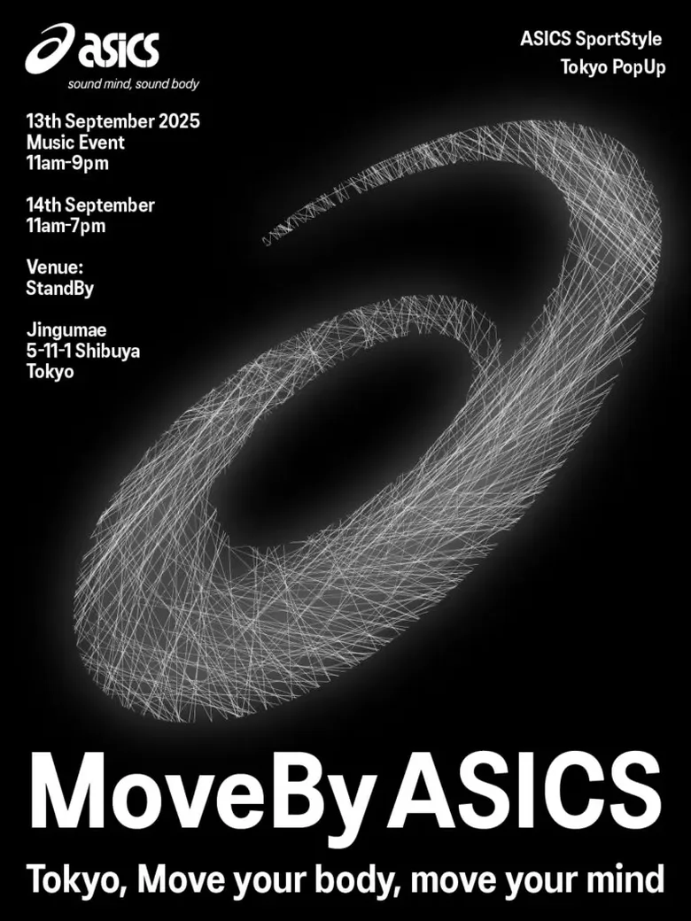 本イベントは、「Tokyo, Move your body, move your mind.」をキーメッセージに掲げ、<ASICS SportStyle>が掲げる創造哲学「Sound Mind, Sound Body」に基づき、音楽・カラダを動かす喜び・日本のクラフトマンシップという3つの要素を軸に企画。東京の多様なカルチャーやクリエイティブシーンを体現するアーティストによるライブパフォーマンスやDJイベントも予定されている。