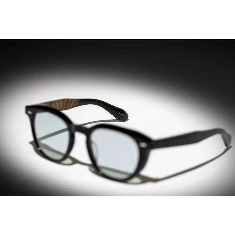 本モデルは、日本の伝統工芸である「沈金(ちんきん)」技法にインスピレーションを得て、23金の金箔粉をアセテート素材に手作業で埋め込んだスペシャルピース。テンプルの内側にはカリフォルニアを象徴するヤシの葉模様が繊細に表現され、着用者だけが見ることのできる“密やかな美”を演出している。
