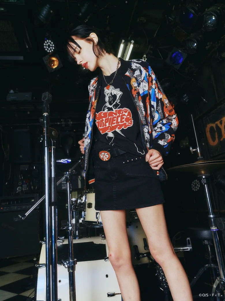 今回登場するのは、<HYSTERIC GLAMOUR>のアイコニックな“ヒステリックウーマン”風に描き下ろされた、ナミ・ロビン・ハンコックのイラストを使用したTシャツやオープンカラーシャツ、メッシュキャップなど計6型。さらに、両面にグラフィックを施したリバーシブル仕様のスカジャンも先行受注販売される。