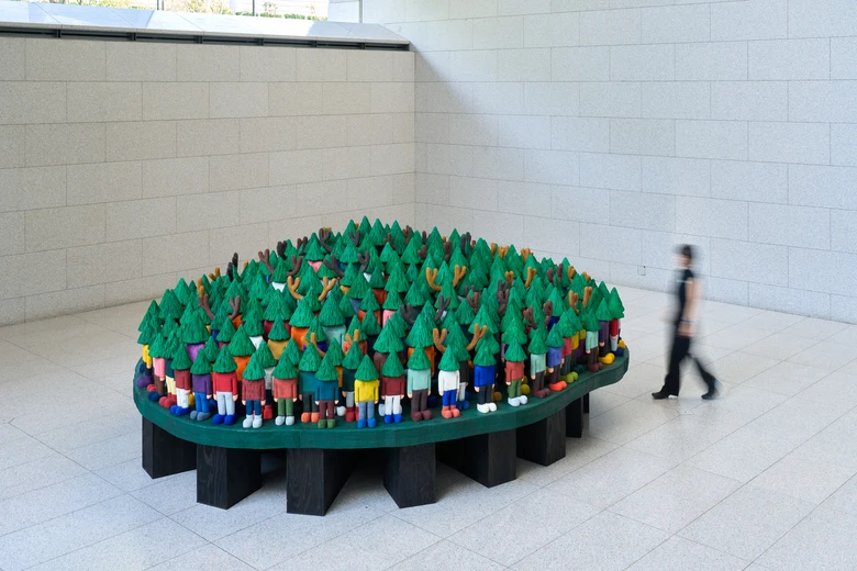 会場では、展示室だけでなく屋内広場や中庭も用い、建築空間そのものを舞台としたスケール感あふれる展示が展開される。絵画や立体、インスタレーションなど、多様な表現を横断する新作が中心となり、観る者を自然と人間の関係性の原点へと誘う。