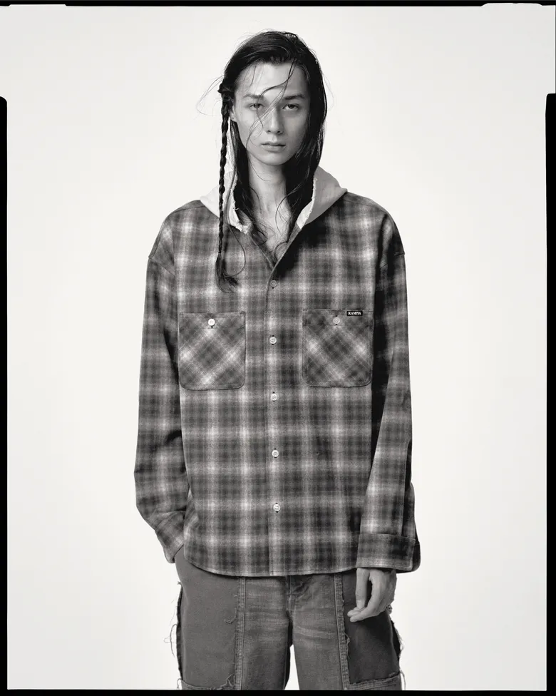 ピュアバージンウールを使用したペンドルトン US 製チェック生地のフード付きシャツジャケット。KAMIYA のインラインコレクションでも人気を博すフード付きデザインをペンドルトン US チェック生地で表現したデザイン。左胸にフラップポケット、左ポケットフラップに KAMIYA ロゴのピスネームを叩きつけ、首裏にペンドルトンヴィンテージネームと KAMIYA ネームをダブル使いした意匠。フード部分はコットン裏毛を使用し、ダメージ加工を施した。ドロップショルダー、身幅にゆとりのあるラウンドカットのシルエット。KAMIYA とのコラボレーションアイテム。¥82,500