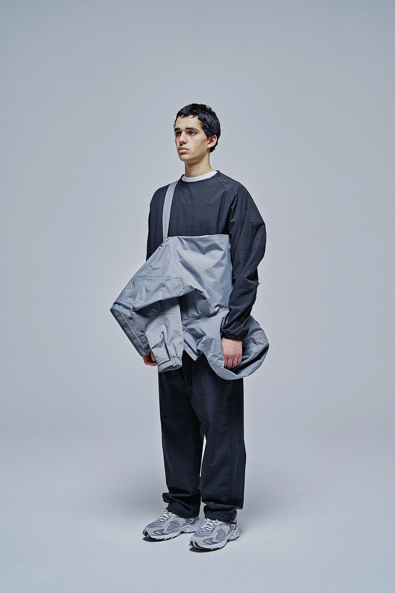撥水性に優れたCORDURA FabricとPOLARTECのキルティング生地を使用した長袖プルオーバー。身頃全体にグリッド状にステッチを走らせたデザイン。身頃の両脇にスラッシュポケット、裾左右にスピンドルを付属。同生地を使用したフーデッドジャケット、トラックパンツとセットアップでの着用が可能。身幅にゆとりのあるシルエット、2色・4サイズ展開。WILD THINGSとのチームアップモデル。