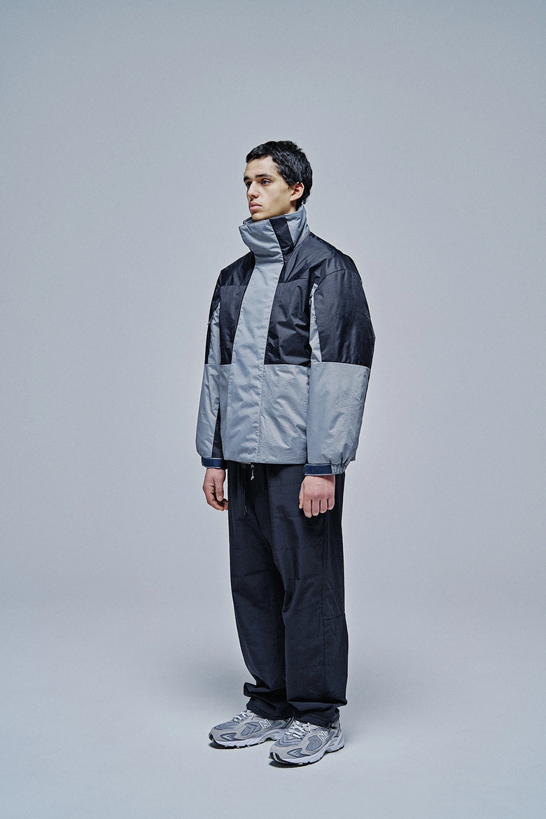 撥水性に優れたCORDURA FabricとPOLARTECのキルティング生地を使用したジップアップフーデッドジャケット。身頃全体にグリッド状にステッチを走らせたデザイン。身頃の両脇にジップポケット、フード内側にジップ着脱が可能なフェイスガードを付属。同生地を使用したプルオーバー、トラックパンツとセットアップでの着用が可能。身幅にゆとりのあるシルエット、2色・4サイズ展開。WILD THINGSとのチームアップモデル。