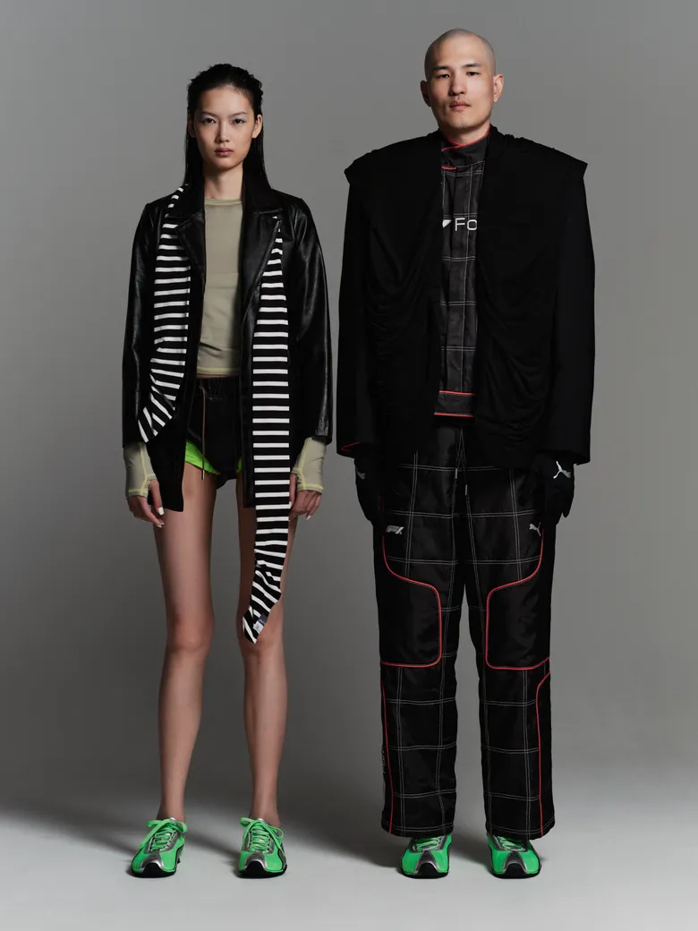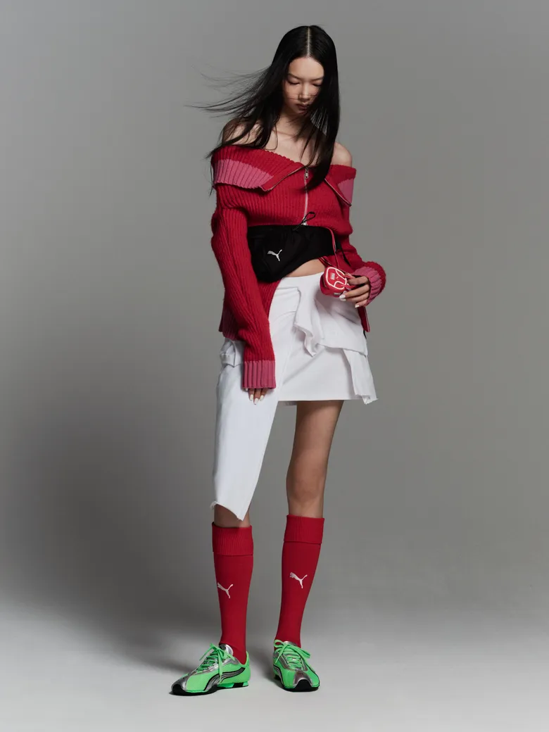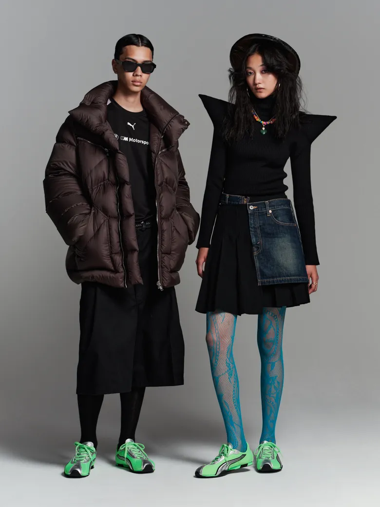 両氏のコメントも到着している。服部氏は「カルチャーを現代的な解釈に落とし込み、小物使いやシルエットのメリハリで遊び心とユーモアを表現」と語り、菅沼氏は「Sporty Girlyではアシンメトリーのボトムスでソックスを際立たせ、Minimal Styleはモノトーン×レザーでモード感、Biker Modeはグローブなどで近未来的かつ大人っぽい印象、Thug Techはグランジーベースにテック要素を加え退廃的でジプシー感のあるスタイルに」と説明している。