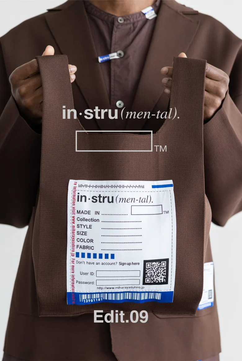 デザイナー三原康裕が新たに提案する新ライン。コレクションライン<Maison MIHARA YASUHIRO>とは対称にデザインを削ぎ落とし、⽣地やシルエット着⼼地に拘ったストレスフリーなカプセルコレクション。「instrumental」とは歌詞のない曲をイメージし、ミハラのコレクションラインが歌詞のある曲であるならば、「instrumental」は歌詞のない曲を指し、無駄な物を削ぎ落としシンプルなモノ作りという意味を掛け合わせている。
