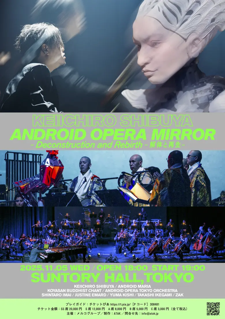 同作はAIを搭載したアンドロイドが歌い、60名超のオーケストラ、ピアノ、電子音、映像、そして1200年の歴史を持つ仏教音楽・声明が融合する革新的なステージで、ドバイ万博やパリ・シャトレ座での上演、東京公演の即日完売など国内外で高い話題を集めてきた作品である。今回の公演では、今年6月に初披露された最新人型ロボット「アンドロイドマリア」がステージで初演奏を行う。