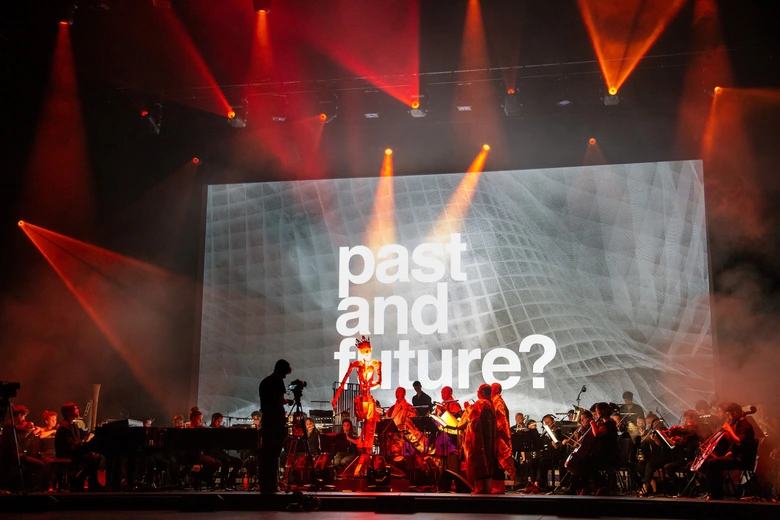 テーマは「Deconstruction and Rebirth―解体と再生―」。新作の上演に加え、過去作の脱構築と再構成を通じて、生と死、そして人間とアンドロイドの境界を問い直す意欲作となる。ヴァイオリニスト・成田達輝が率いる若手オーケストラとアンドロイド、電子音が鮮烈に協奏し、サウンドはエンジニア/アーティストのZAKが設計。客席にも奏者や声明を配置し、ホール全体を“楽器”化する立体的な音響体験を創出する。映像演出はビジュアルアーティストのジュスティーヌ・エマールが担当し、ステージ上部の大型スクリーンに展開する。
