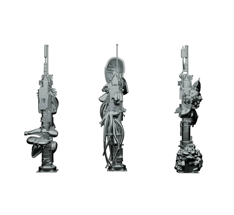 映像には観測できた情報と、欠測による空白の両方が重ねられている。深海をめぐる科学の限界と、いまの技術が深海に迫りきれていない、その限界があらわになる。機械と生命が入り混じったような彫刻が不気味に呼吸をはじめ、人間やAIの想像力が、深海の見え方をそっと変えていく。