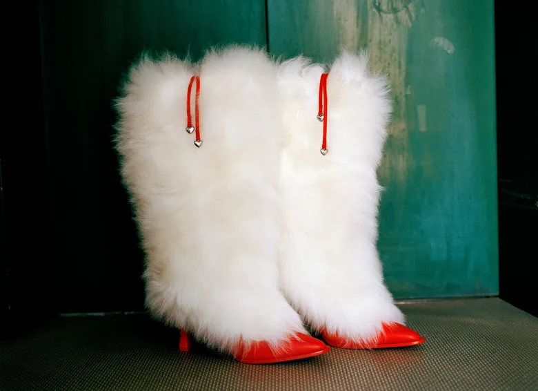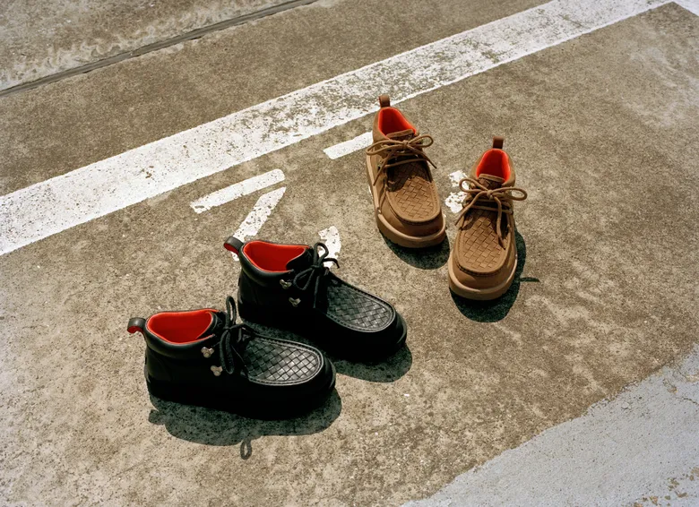 今回のコレクションは、ウィメンズのシープスキンに包まれたヒール2色(ホワイト/レッド、ブラウン)、メンズのブーツスタイル2型(ブラック、チェスナット)で構成され、全3型・計5スタイルが展開される。<UGG>のクラシックなスタイルをベースに、YOONの渋谷に対するノスタルジーと敬意を込めた再解釈が施されている。