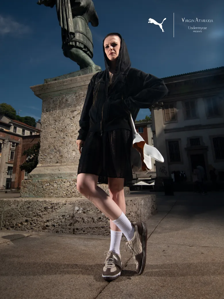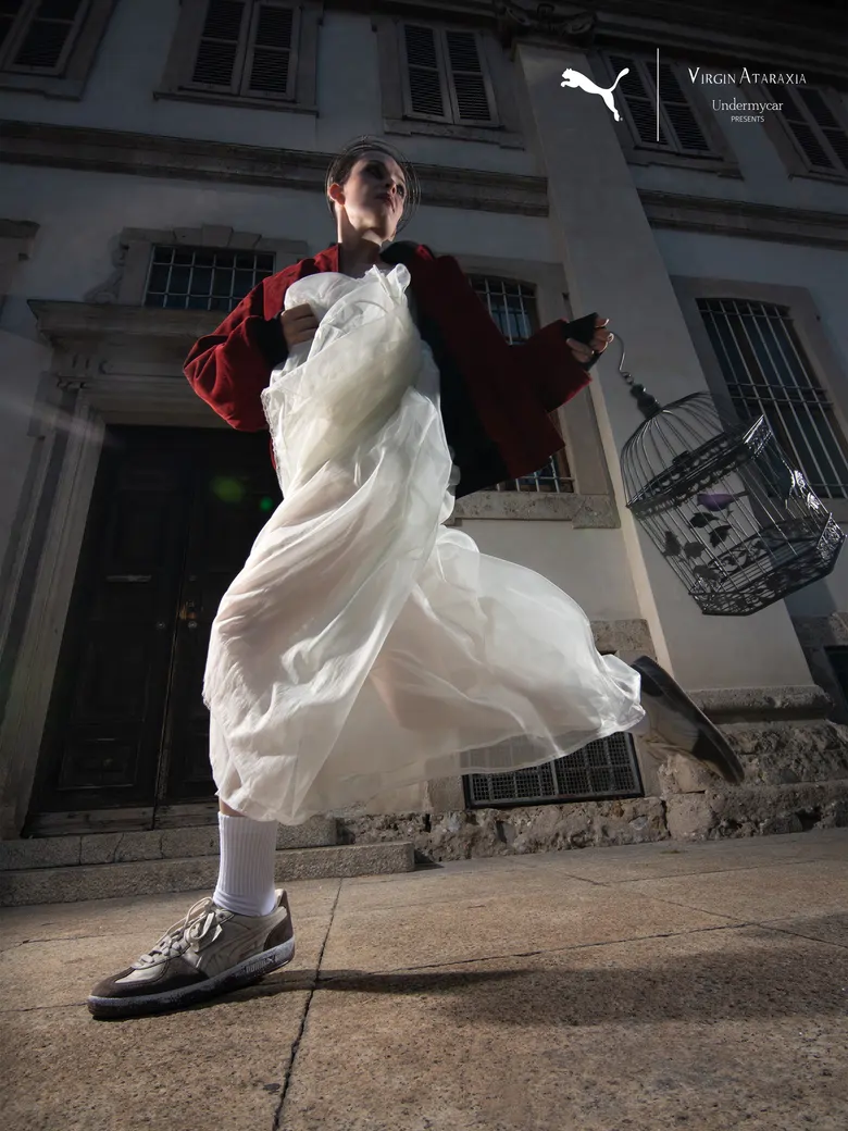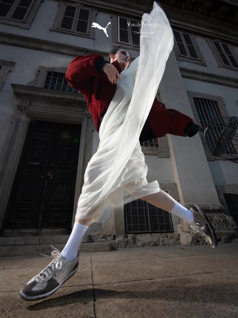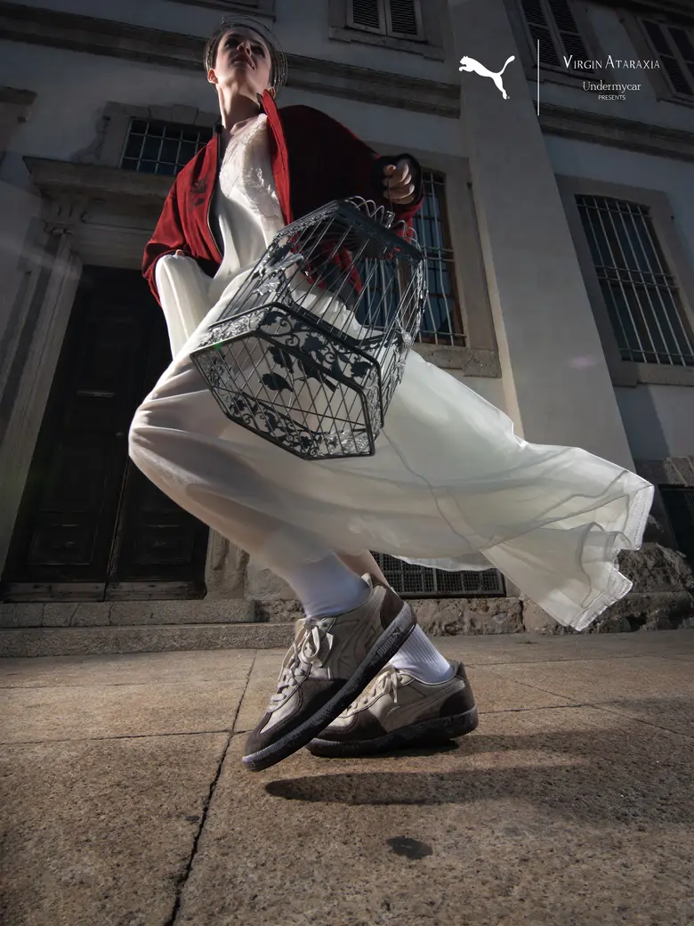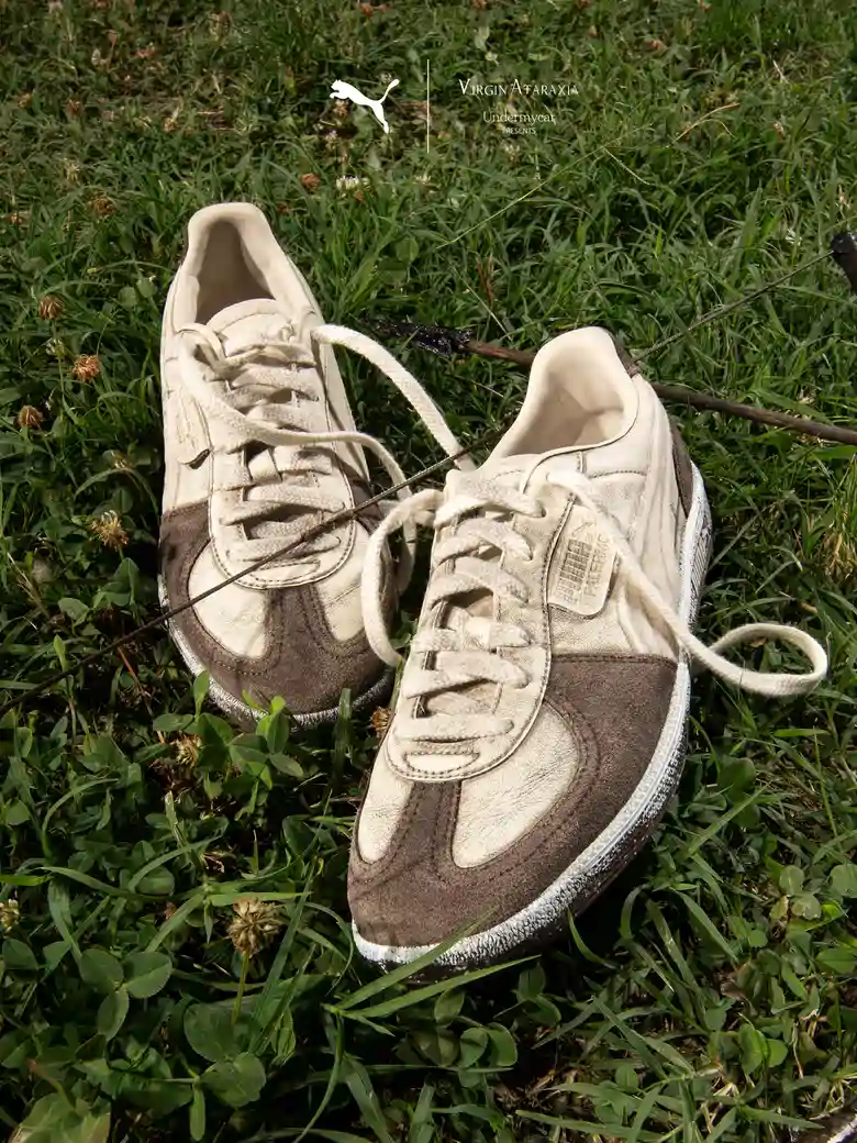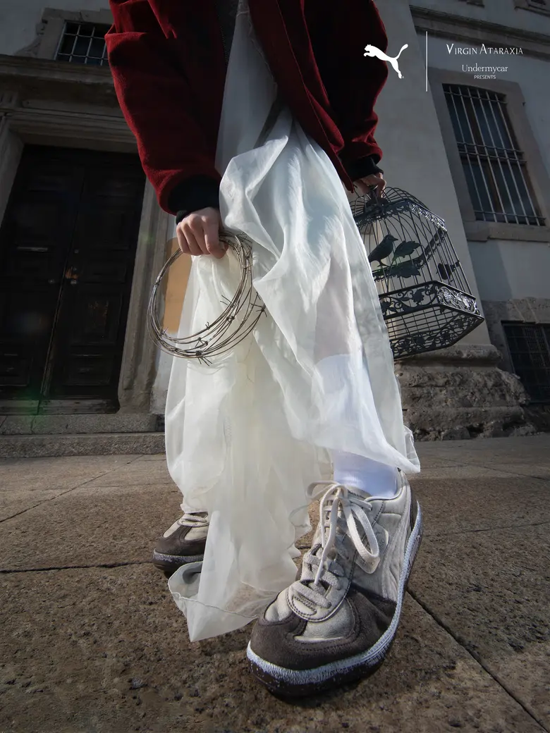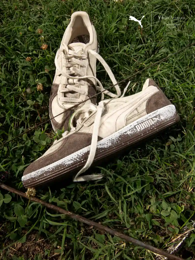 本作は、<PUMA>のロングセラーモデル「Palermo」をベースに、ラグジュアリーとヴィンテージの美学を融合。アッパーにはほのかな光沢を放つベルベット素材を採用し、さらにダーティウォッシュ加工を施すことで、長年愛用されたような深みとリアリティを表現している。クラシックとモダンの要素が調和し、洗練されたデザイン性が光る一足となっている。