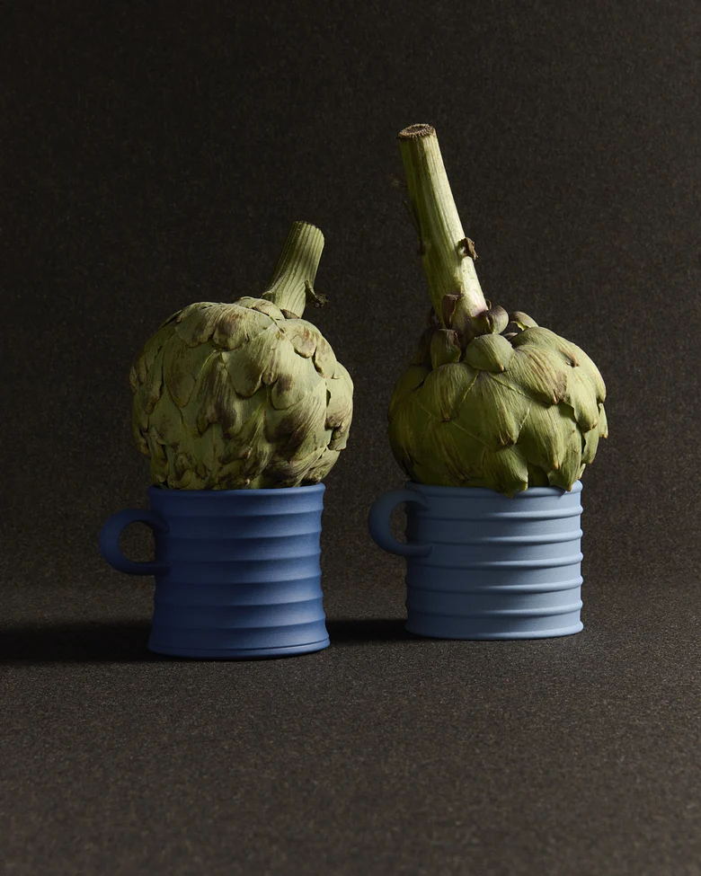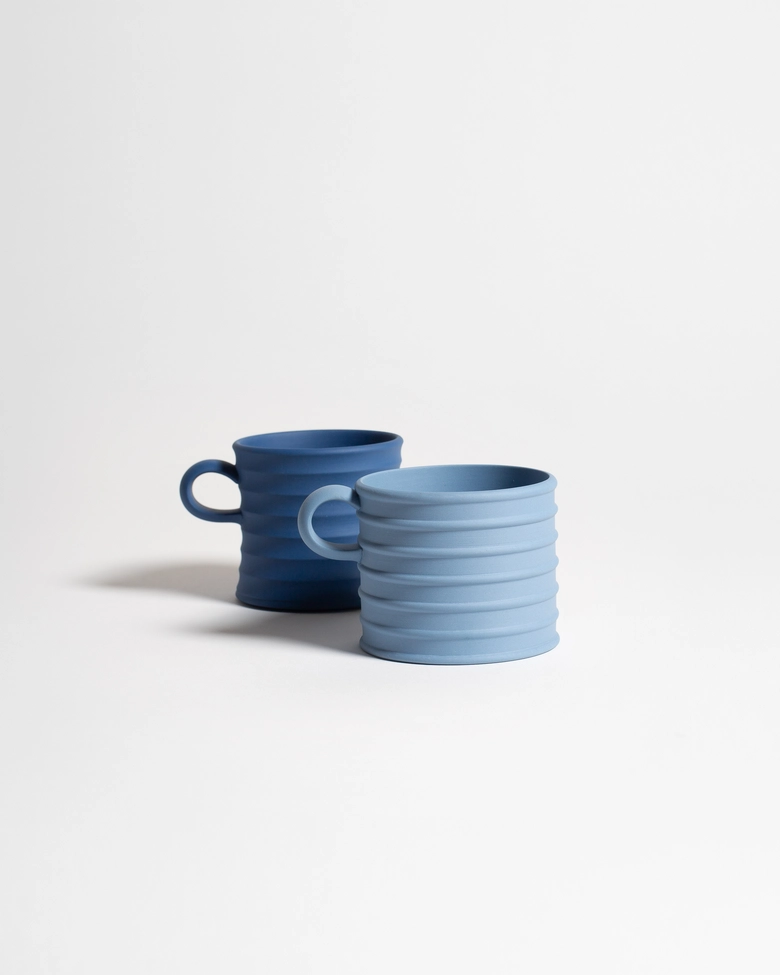 <JW Anderson x Wedgwood>のコレクションでは、ブルーとホワイトのインレイが映えるティーカップ&ソーサー、コーヒーカップ&ソーサーを展開。さらに、以下3種類の印象的なカラーコンビネーションで仕上げられたマグシリーズもラインナップする。