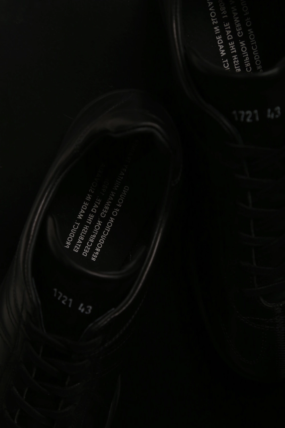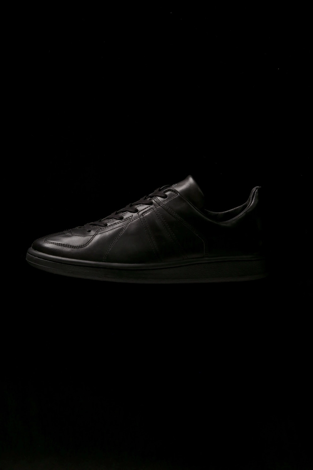 今回のコラボレーションは、2021年に発表した「マルチミリタリートレーナー」に続く、両者にとって2度目の取り組みとなる。ベースとなるのは、<REPRODUCTION OF FOUND>が得意とするジャーマントレーナー。イタリアンホースハイドを裏表反転し、縫い目を表に露出させる「インサイドアウト」仕様とすることで、デザインの緊張感を演出。本来表に出るパーツを裏側に配置するなど、従来の構造を反転させたユニークなパターンに仕上げている。