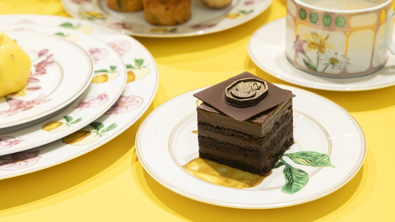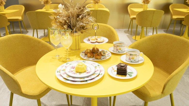 カフェの空間は、ブランド創業130周年を象徴するイエローとゴールドで彩られ、3メートルのクリスマスツリーがホリデー気分を盛り上げる。また、オーストリアで開催されるウィーン国立オペラ座舞踏会のデビュタントのために製作された<Swarovski(スワロフスキー)>のティアラも展示され、ブランドの歴史とクラフツマンシップを体感できる。