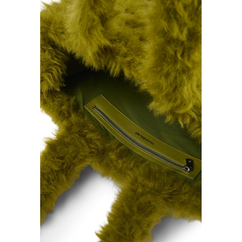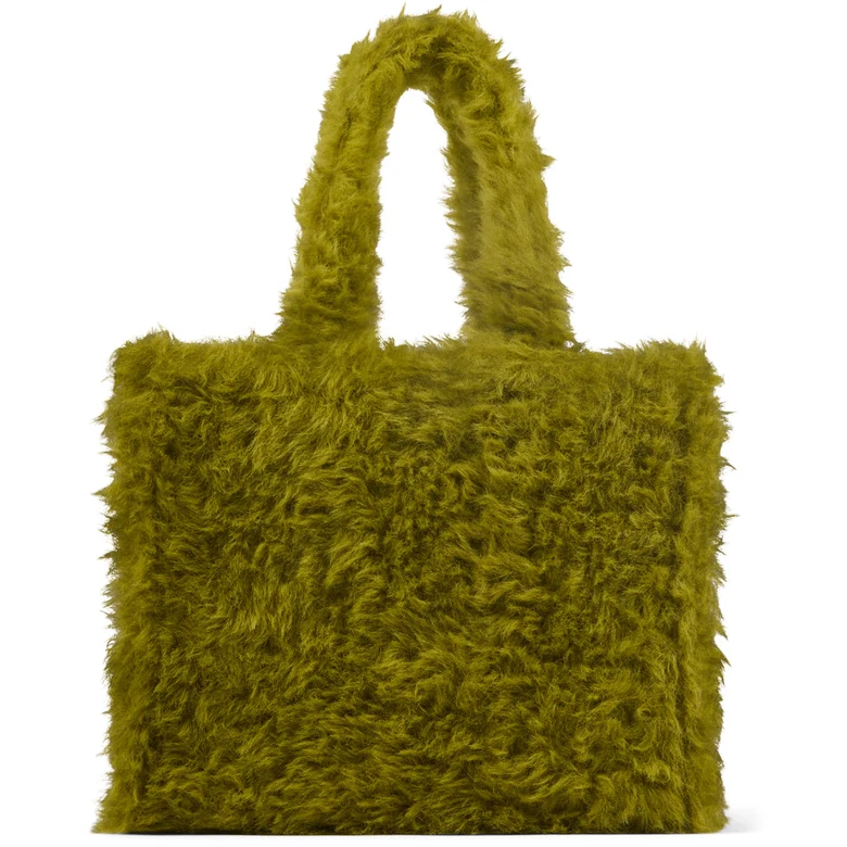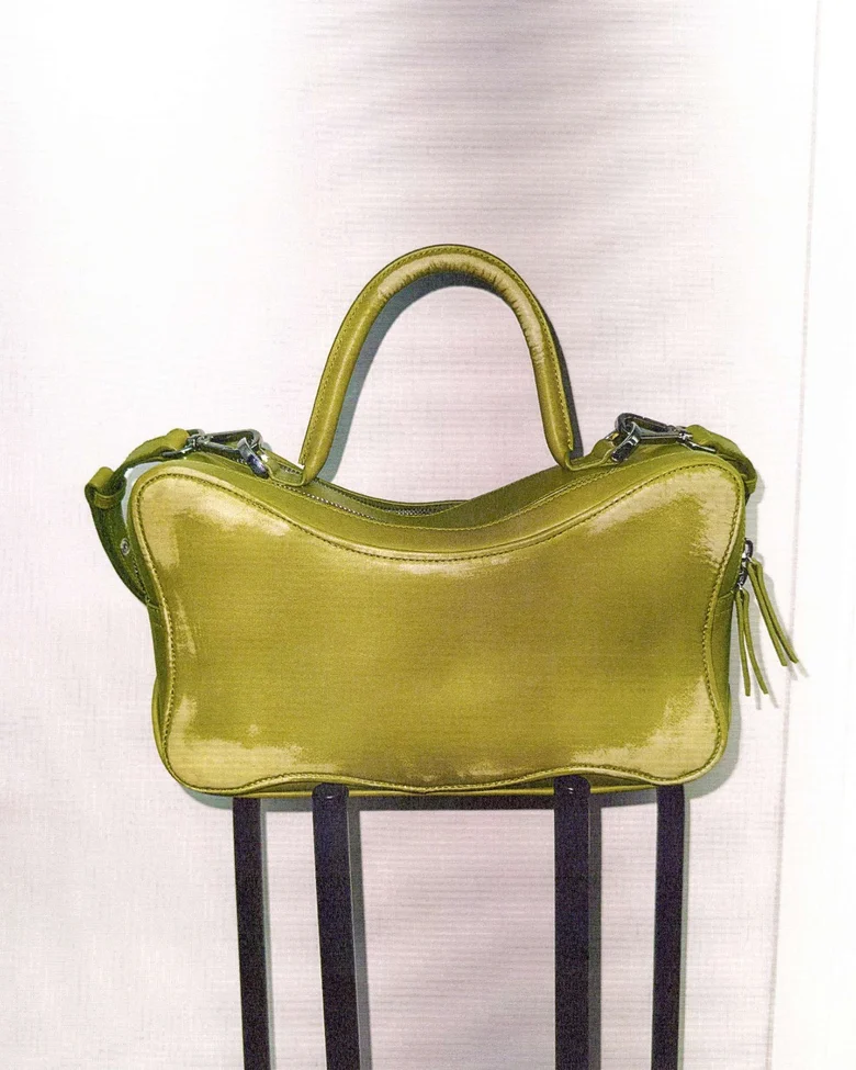 “Fluffy”シリーズから登場したTakkuは、ピスタチオグリーンとブラックの2色展開。わずかにくたっとした柔らかな構造で、肩掛け・手持ちのどちらにも対応。広々とした内部にはノートパソコンも収納可能で、日常使いはもちろん、旅行にも最適。同シリーズの「Wabi」シューズと合わせたトータルコーディネートも提案されている。