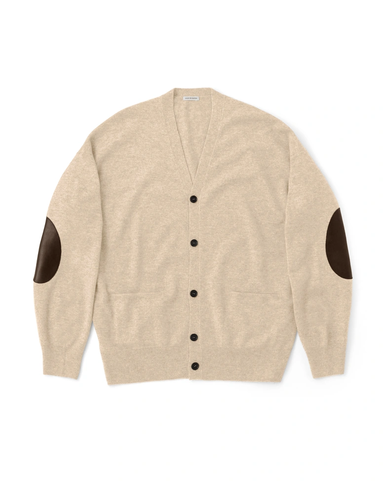 メンズ定番のエルボーパッチ仕様の「あのカーディガン」を、カシミヤで。そこにさらにポケットを加えた12ゲージの万能カーディガンとなっている。