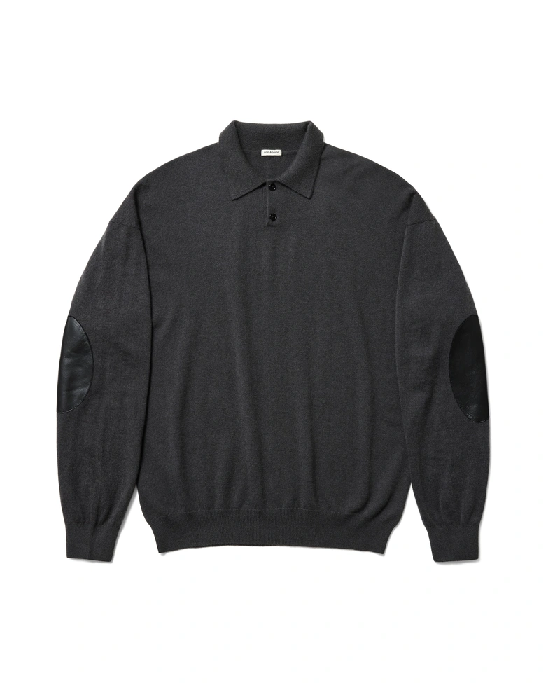 モンゴリアンカシミヤのシリーズではお馴染みになっている、「あのニット」シリーズ。今シーズンは、ニットポロにエルボーパッチが付いた新顔が加わった。ポロ襟に2つボタンのニットは、開きは短め。インナーにはカットソーはもちろん、襟付きのシャツも好相性で、レザーのエルボーパッチが男性的かつ、知的な印象も醸し出す。ややゆったり目のシルエットで、メンズライクな着こなしが好きな女性にも使いやすいデザインとなっている。