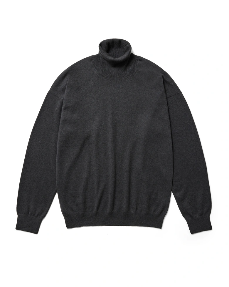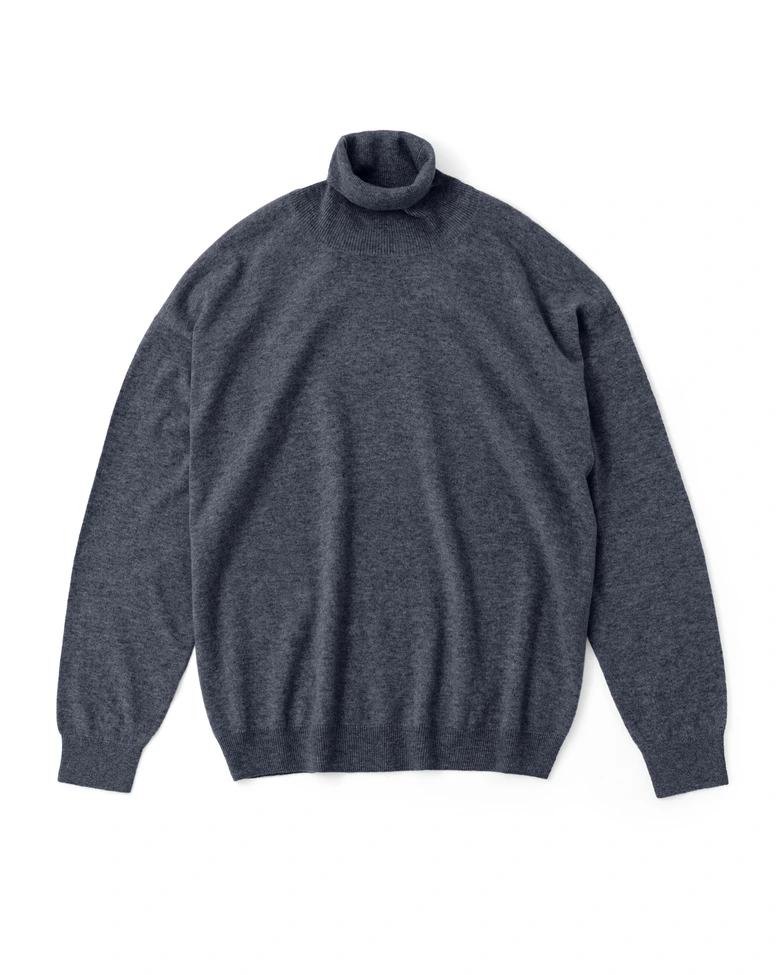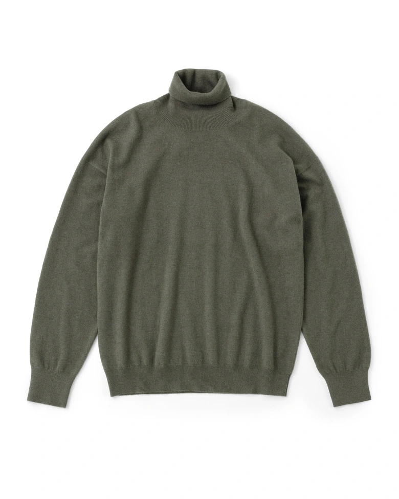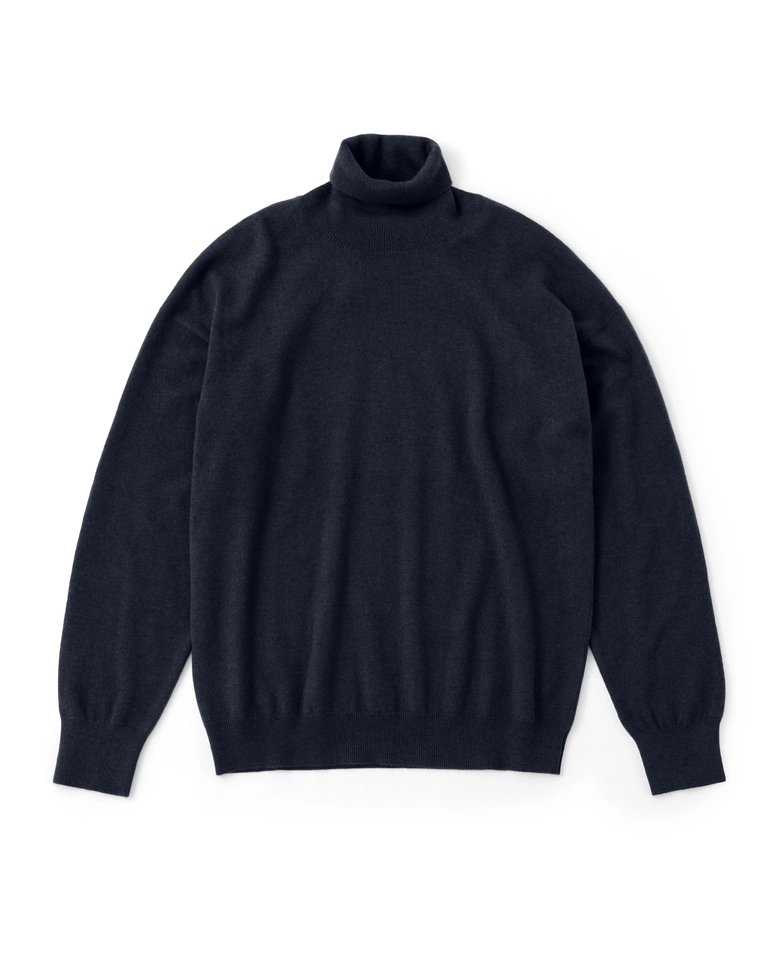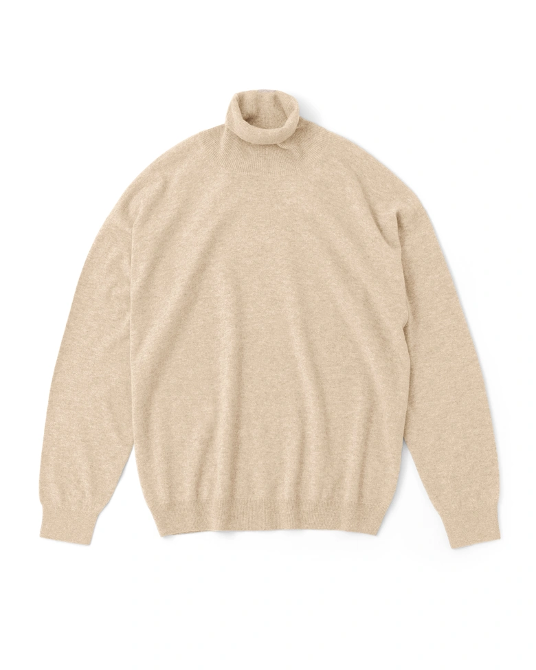 首のチクチク感が気になるタートルネックは、カシミヤ素材と最高のマッチング。ゆったりシルエットのボディ、程よくフィットするネックは、パーマネントな魅力が漂う。同シリーズのカーディガンと組み合わせたアンサンブルも楽しめる一枚になっている。