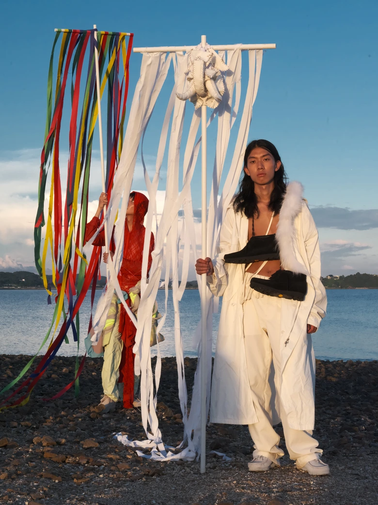 キャンペーンビジュアルでは、<POST ARCHIVE FACTION(PAF)>が得意とする実験的構築手法を通じて、韓国の伝統儀式や象徴性から着想を得た「ワラビー」を再構築。自然や土地の精霊とのつながりを表現するトーテミックな要素を現代的に再解釈し、環境への配慮と丁寧なものづくりの精神を反映したコレクションとなっている。