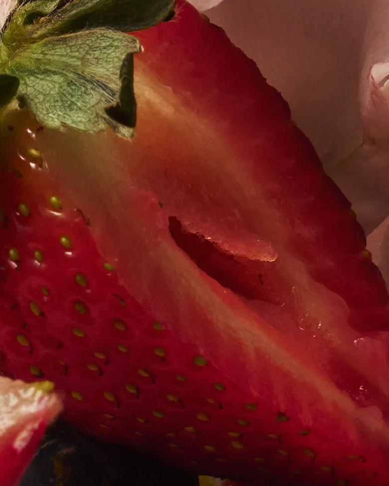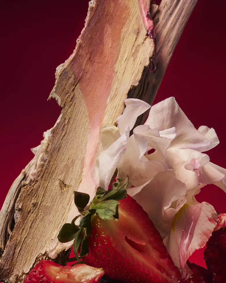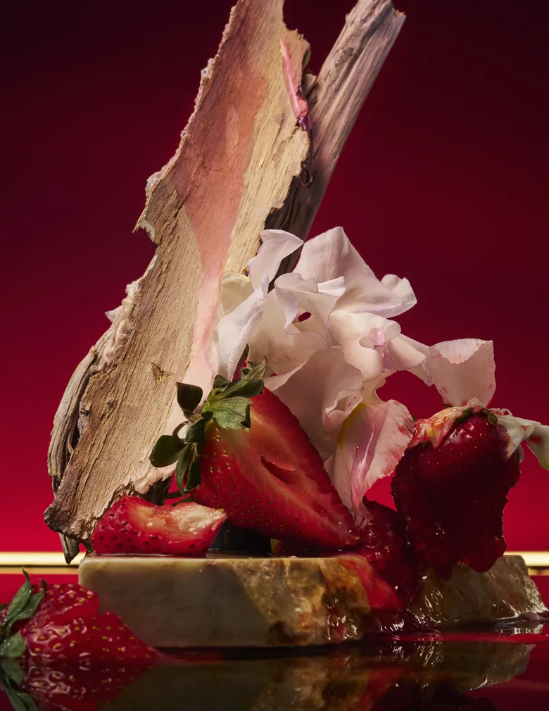 調香師タンギー・ゲスネが手がけた本作は、みずみずしいストロベリーとホワイトウードが幻想的に融合。直感に訴えるストロベリーミルクアコードが、甘すぎず洗練された印象を与える一方で、ホワイトウードが現代的で神秘的な余韻を添える。感情のように脈打つその香りは、まるで儀式のように肌を包み込むだろう。