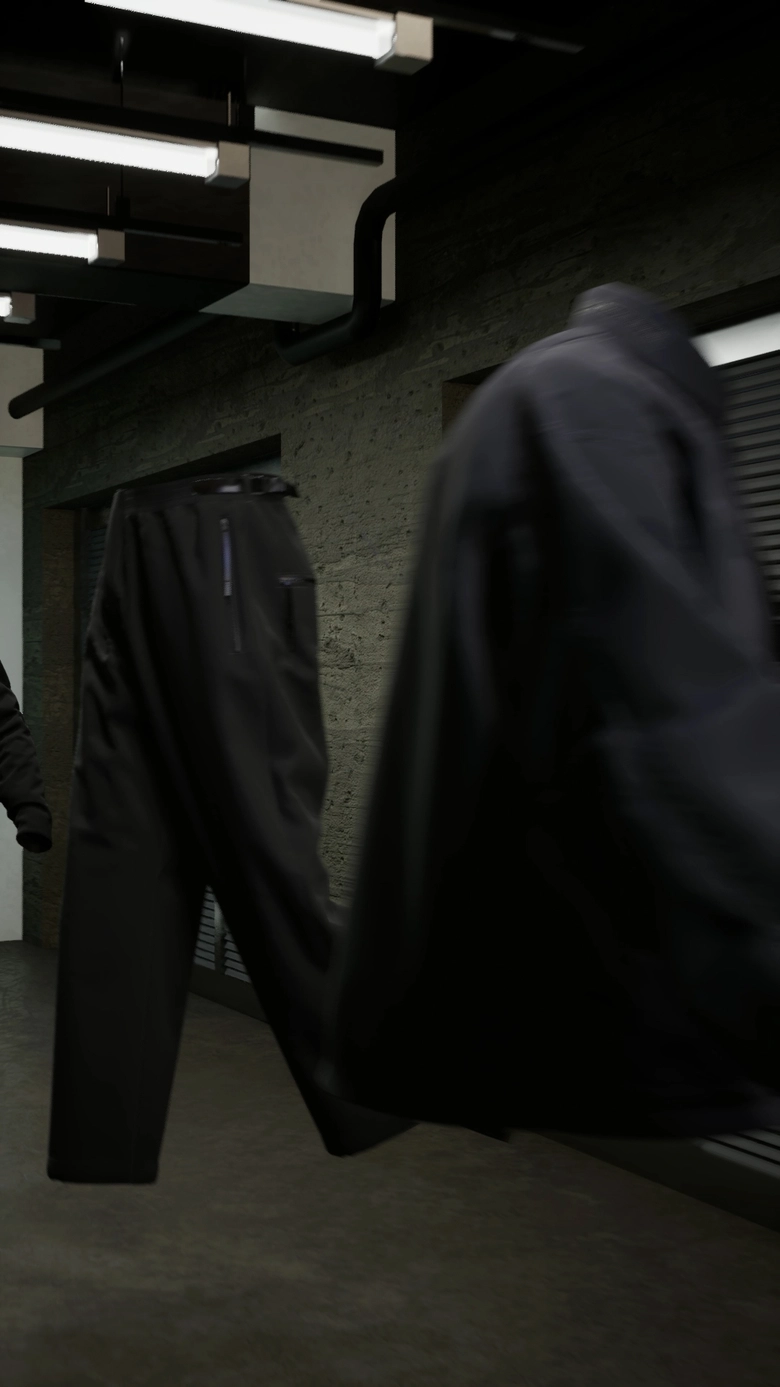 PULLOVERと同素材を使用したセットアップ対応のテクニカルボトム。やや太めのストレートカットが特徴で、機能性とシルエットのバランスを追求。全ポケットにファスナー、ウエストにはドローコードとアジャストテープを備え、日常使いにも最適。