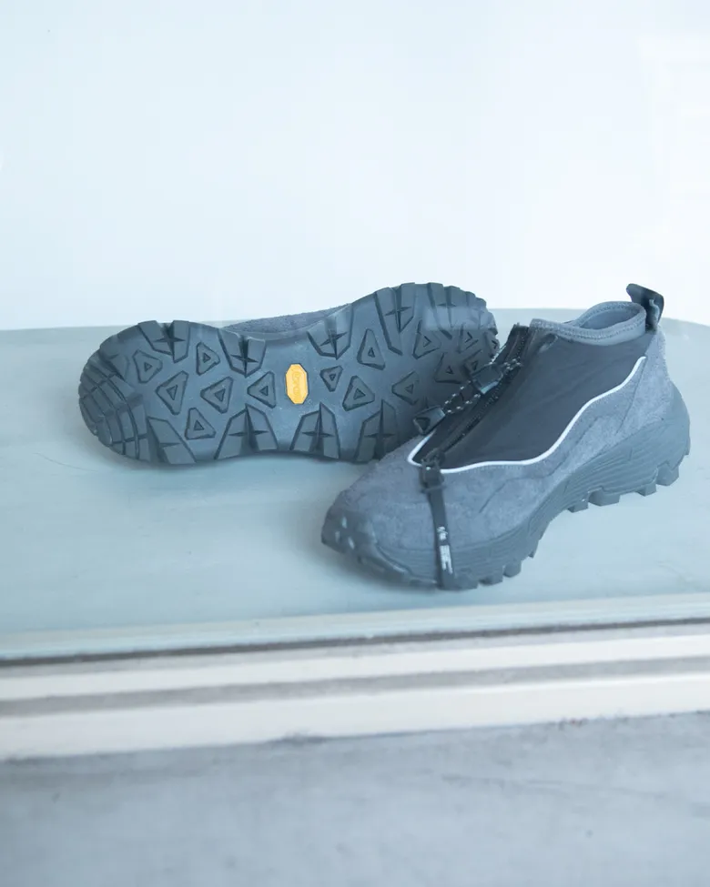 ライニングには防水透湿機能を備えた「SUICOKE SHERPA」を採用。アウトソールには、ウェット/ドライ双方の路面で高いグリップ力を発揮する<Vibram(ビブラム)>「MEGAGRIP」配合ソールを、ミッドソールには軽量で衝撃吸収に優れたSLE配合の高スペックソールを搭載した。アッパーは<PERTEX(パーテックス)>「SHIELD」のナイロンとスエードをコンビネーション。止水ファスナーにより水の侵入を防ぎ、ZIPの開閉具合でカジュアルにもクリーンにも対応する。両ブランドが培ってきた機能性とデザインを凝縮し、見た目の重厚感に反して非常に軽い履き心地を実現した。なお、ソールは「Vibram Arctic Grip」を進化させた「XS Trek Evo」を搭載し、年間を通じた多様な地形での使用を想定している。