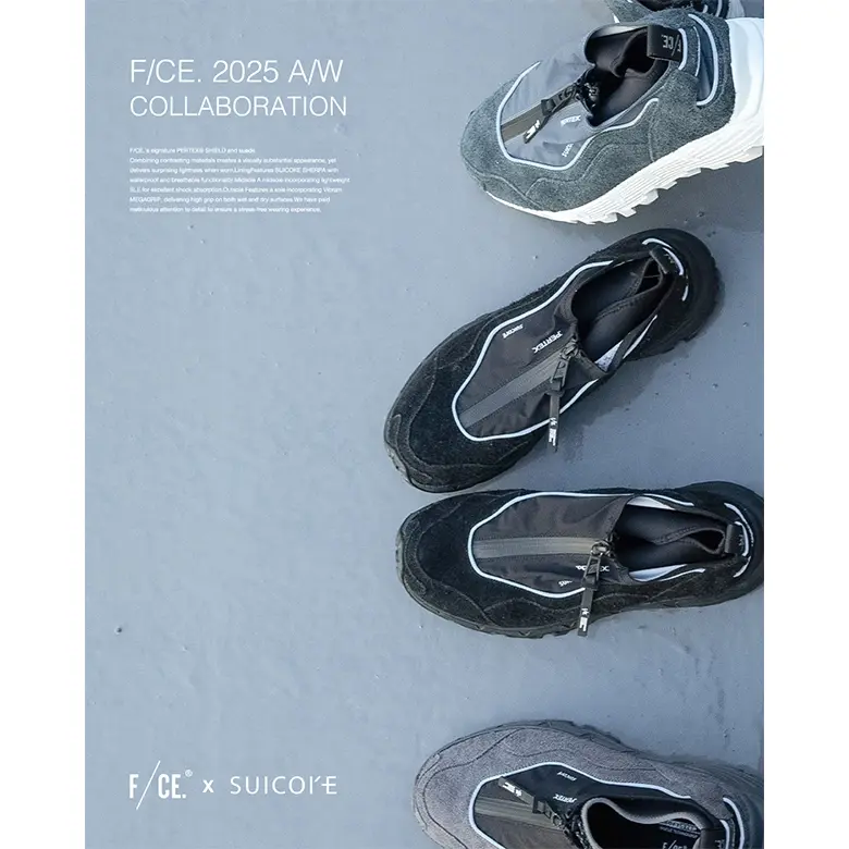 F/CE. × SUICOKE 初コラボ、都市と自然を横断する高機能シューズ「AKK-ZIP-FCE」が発売