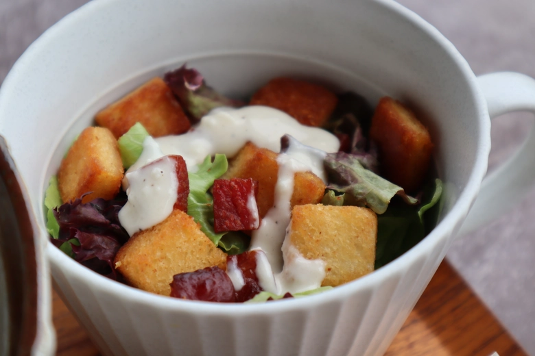 紀ノ国屋の名物かつサンドのパンの耳を使ったシーザーサラダ