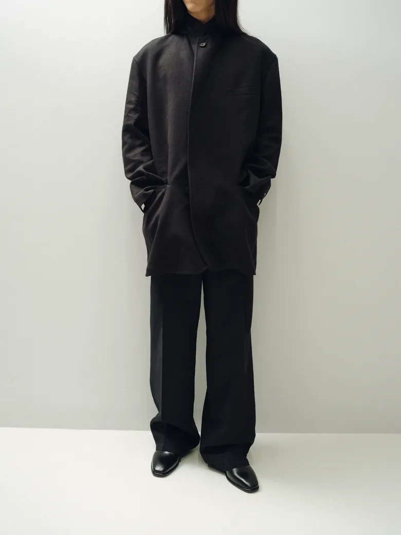 <BIBLIOTHERK>は、デザイナー畑龍之介が手がけるブランドで、ドイツ語で「図書館」を意味する“BIBLIOTHEK”に自身の頭文字“R”を加えて命名された。ドイツやオランダでの生活経験を背景に、ワークやミリタリーの要素を静かな時間性へと再解釈し、ニュートラルな佇まいをテーマとしたコレクションを展開している。