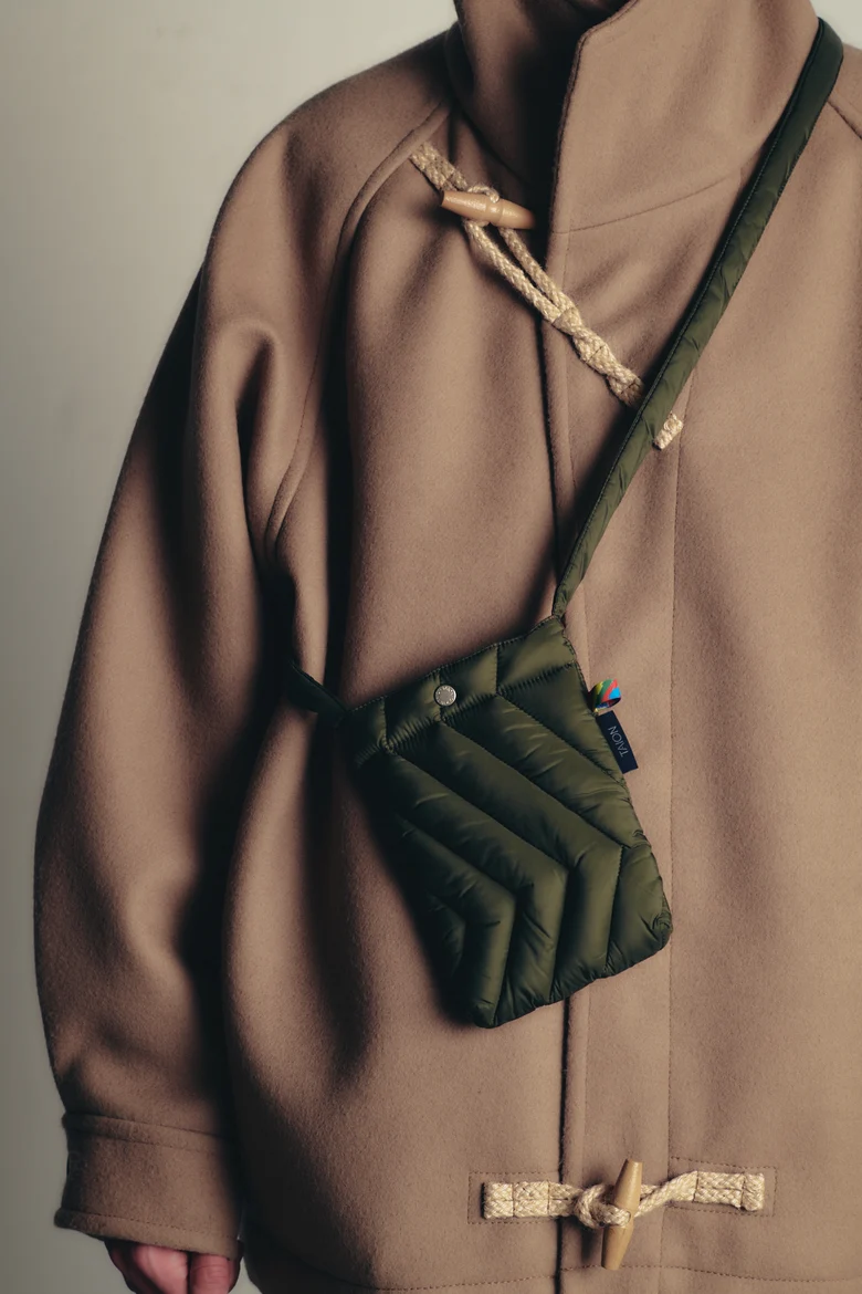 TAIONとのコラボレーションによって誕生した、軽量かつボリューム感のあるダウンポーチ。ダウン特有のふんわりとした立体感と、実用性を兼ね備えたデザインが魅力である。スマートフォンや財布などの必需品を収納するのにちょうどいいコンパクトサイズで、デイリーから旅行時のサブバッグとしても活躍。アクセントとしても映える存在感のあるアイテムになっている。