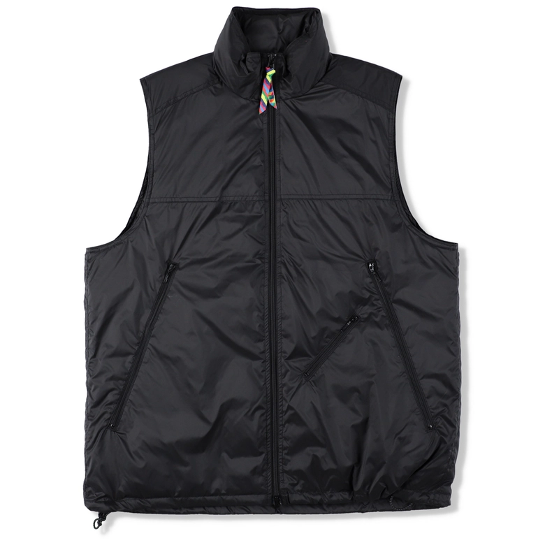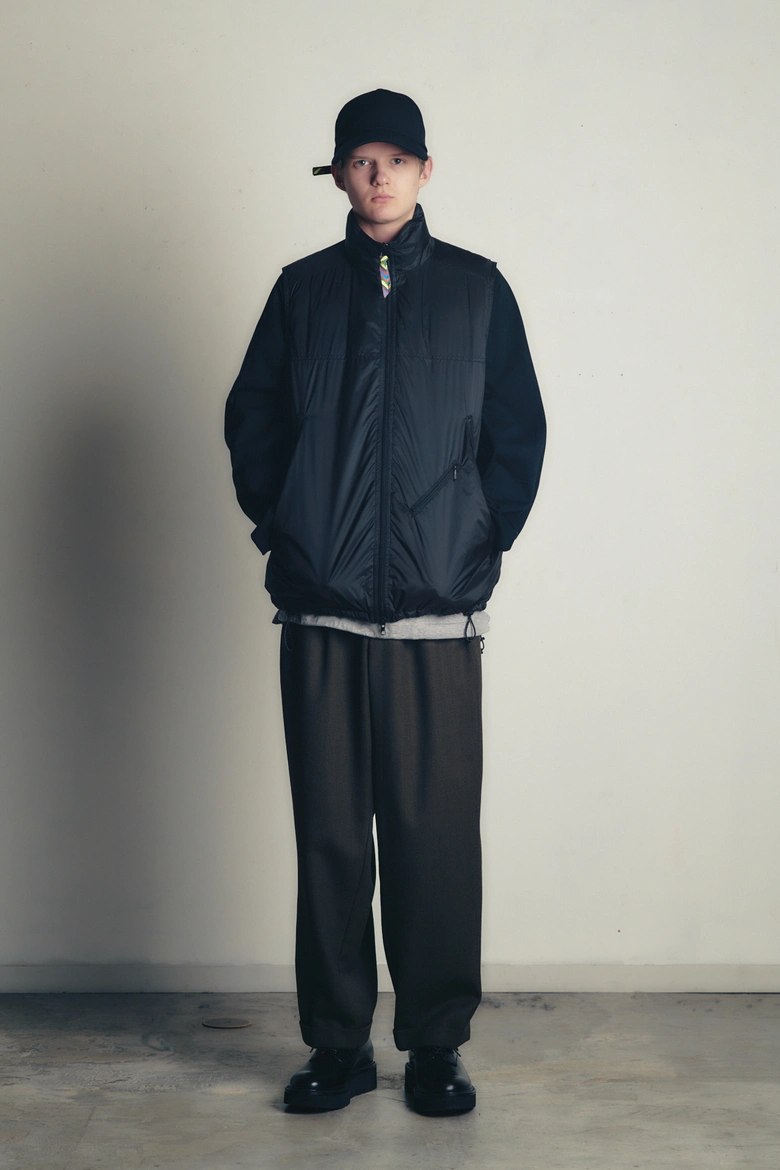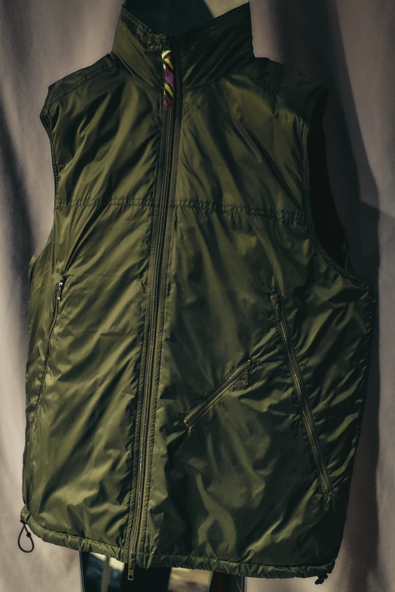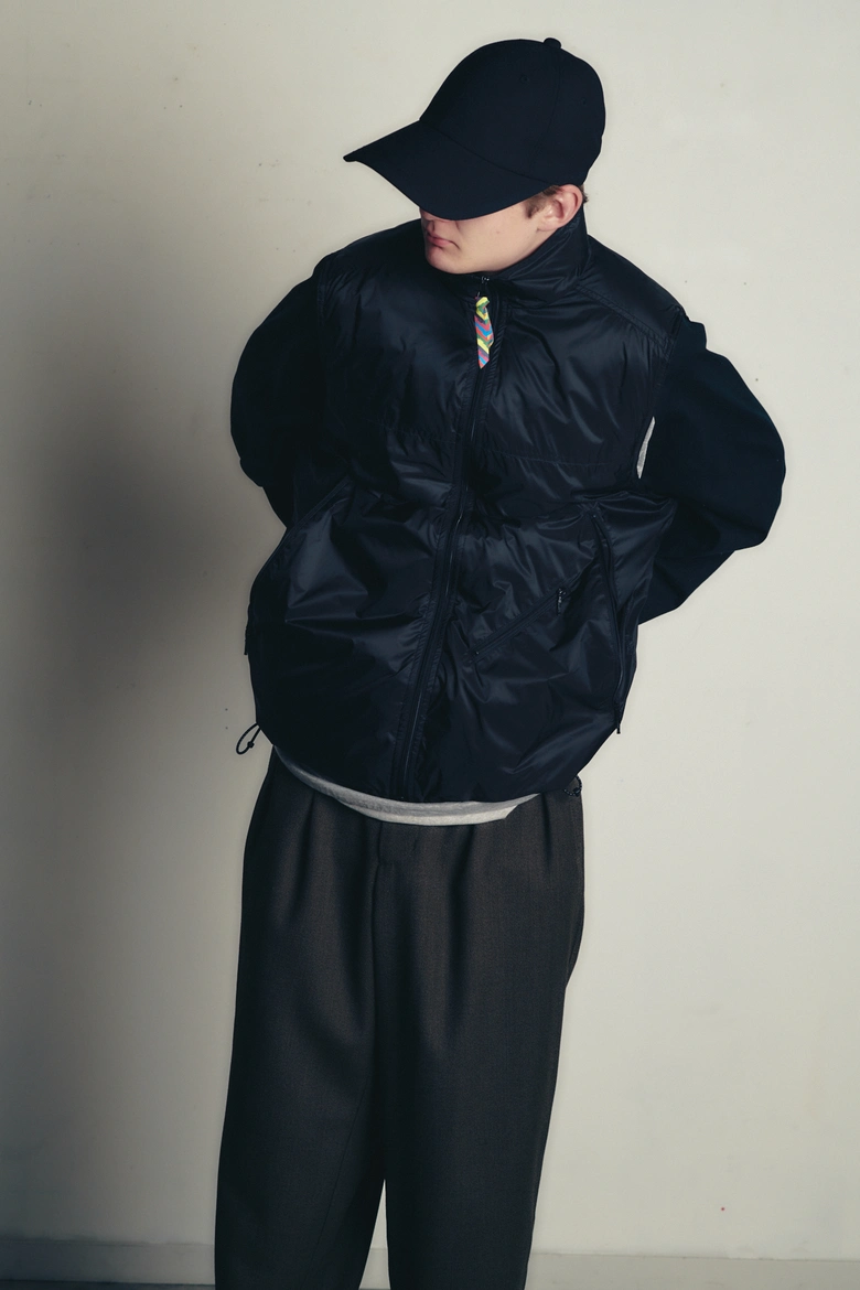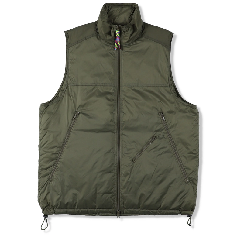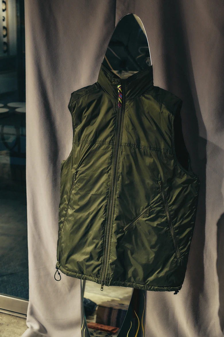 TAIONとのコラボレーションにより生まれた、超軽量かつ高機能なダウンベスト。羽毛特有温度・湿度調整機能に優れ、800flp以上の高品質ダウンを使用することで、軽量でありながらも高い保温性と弾力性を実現している。肌触りもなめらかで、日常使いに最適なベーシックデザイン。冷たい風の吹く日にも対応できる実用性を備え、都市生活からアウトドアシーンまで幅広く活躍する1枚になっている。