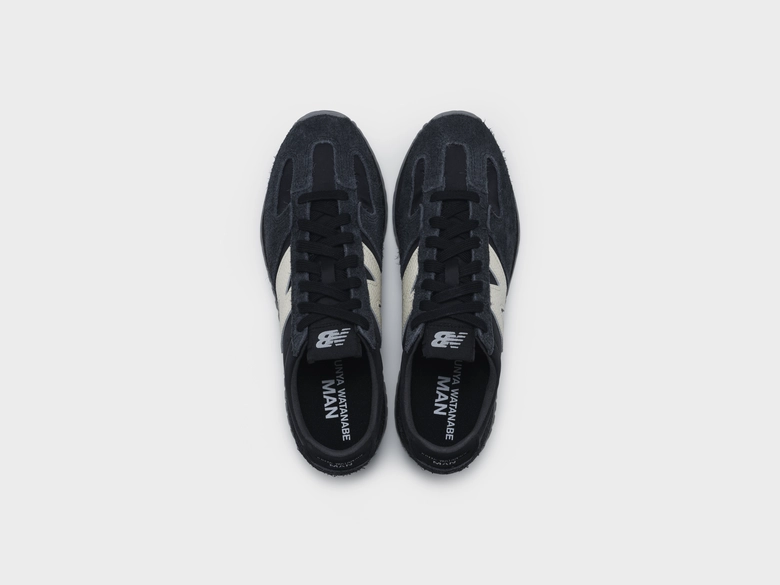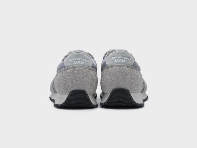 <JUNYA WATANABE MAN>の2025年秋冬コレクションの世界観を反映し、ラギッドなヘアリースエードのオーバーレイと、通気性の高いメッシュのアンダーレイを組み合わせたアッパーを採用。ヒールカウンターとインソールには<JUNYA WATANABE MAN>のロゴがあしらわれ、カスタムシューズボックスも付属する特別仕様となっている。