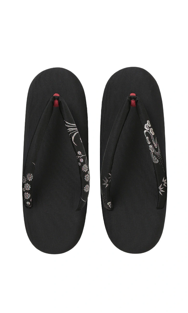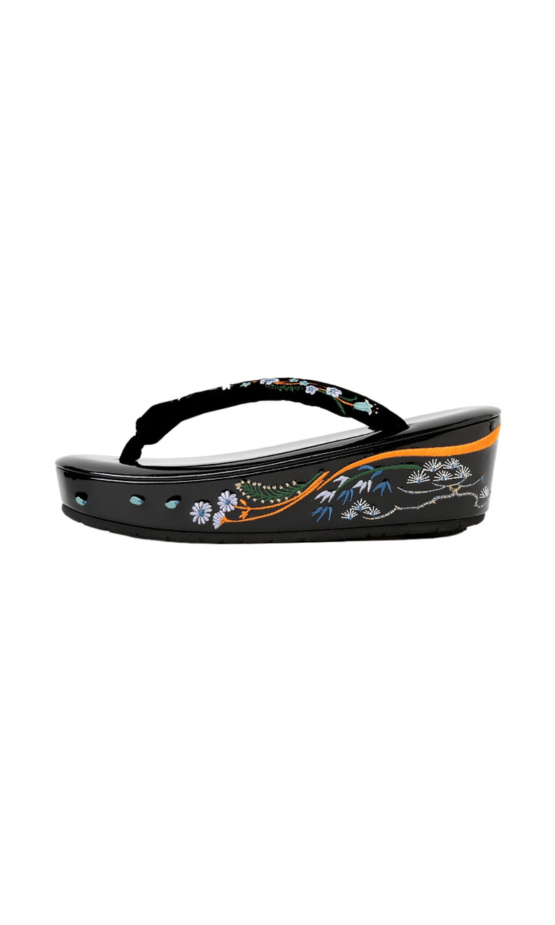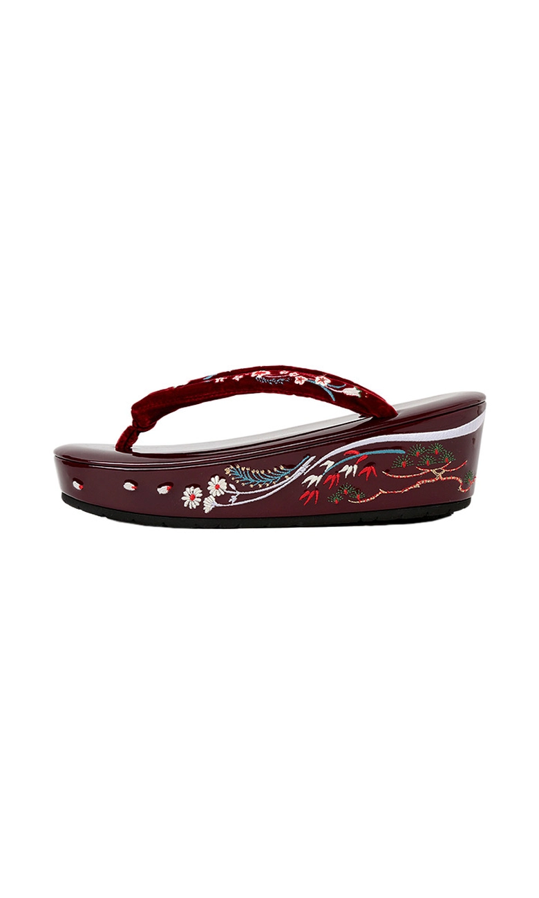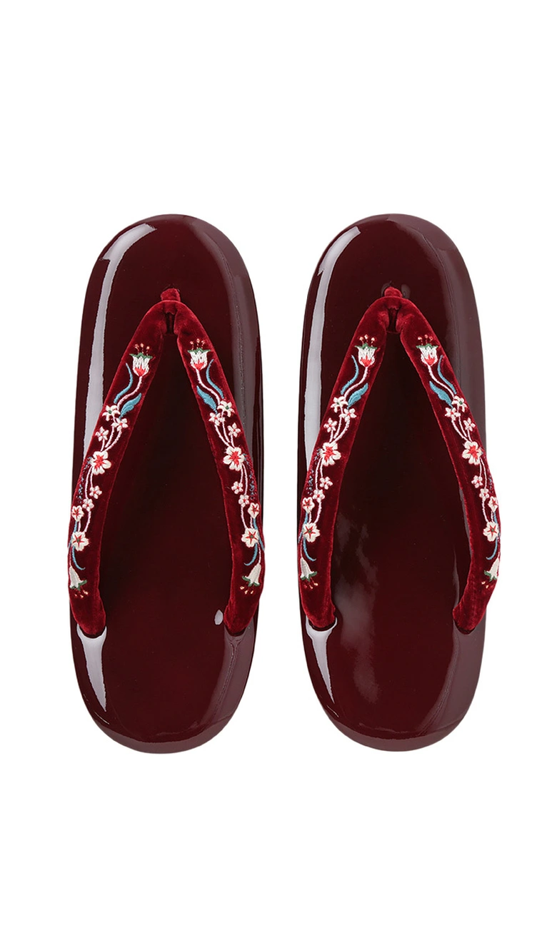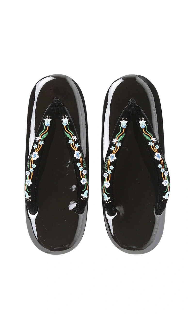 Mame Kurogouchi × 履物 関づか Floral Embroidery Hakimono