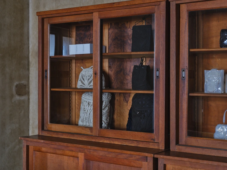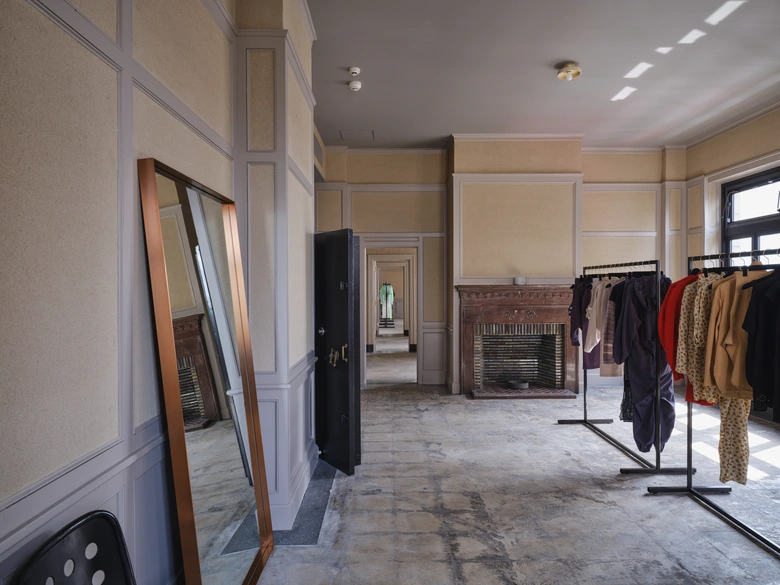 3回目の開催となる関西圏での<Mame Kurogouchi>のPOP UPは、2025年春夏コレクションに続き、Vague Kobeの重厚かつ静謐な空間が舞台となる。Mame Kurogouchi Aoyamaのデザインをはじめ、9月に開催されたDESIGNEASTでの展示を手がけた、Teruhiro Yanagihara Studioが主宰するVague Kobeは、1938年竣工のビルを改装したオルタナティブスペース。扉を廃することで部屋同士が緩やかに接続する「建築的プロムナード」を体現する唯一無二の空間となっている。