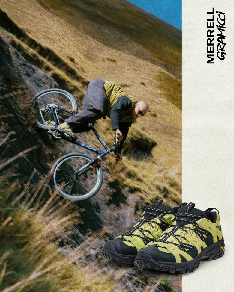 本コラボレーションでは、<MERRELL>の象徴ともいえるハイキングブーツ「MOAB(モアブ)」をベースに、<GRAMICCI>の象徴的な“動き”を体現した「SIREN WEB」コレクションのアッパーデザインを融合。トレイルでの高いパフォーマンスと大胆なスタイルを兼ね備えた、新しいアウトドアシューズが誕生した。