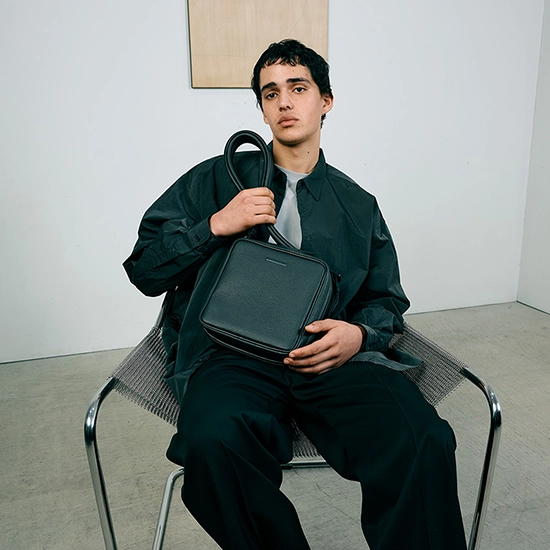 本製品は、これまでクロスボディ型で展開してきた同シリーズに対し、ユーザーからの多くの要望を受けて開発されたショルダータイプ。カジュアルからセミフォーマルまで幅広いシーンに馴染むミニマルなデザインで、2サイズ(ラージ、スモール)展開。カラーはブラックとオフホワイトの2色が用意されている。