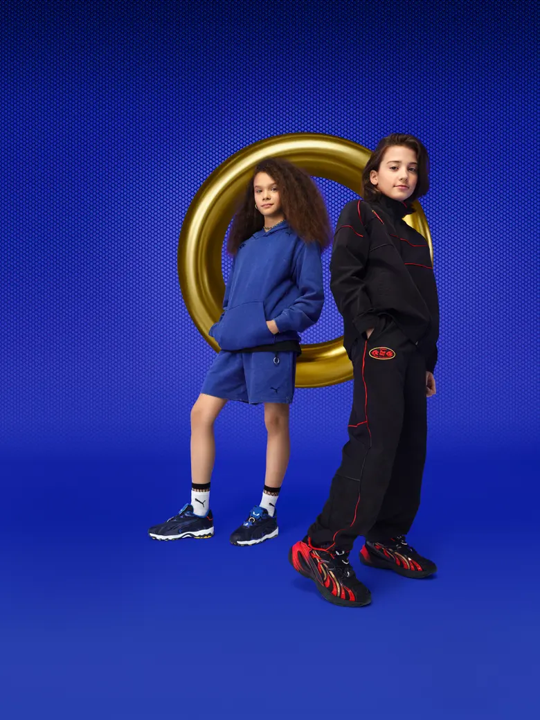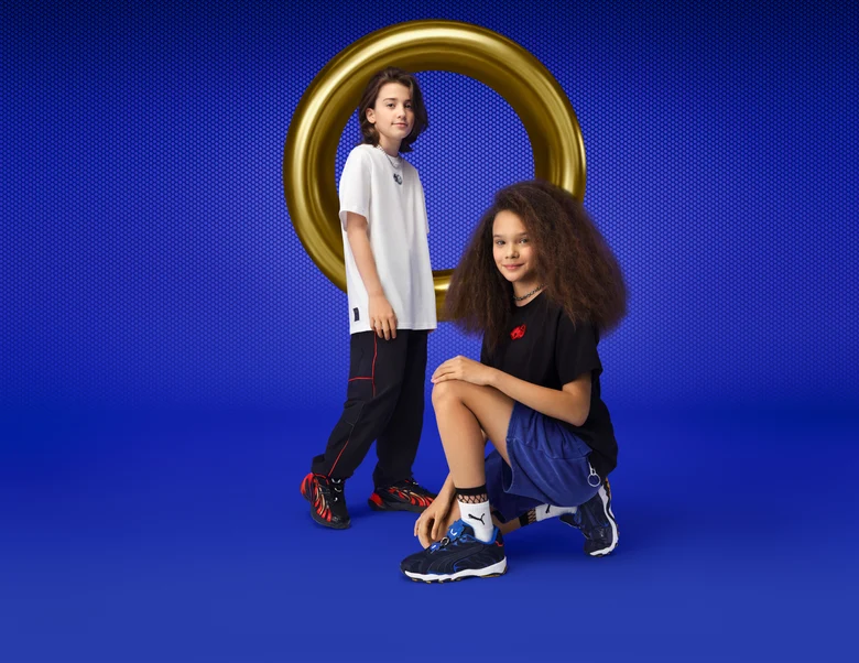 さらに、このコレクションのデザインは新作ゲーム「Sonic Racing: CrossWorldsTM」にも登場。プレイヤーはゲーム内で8種類のプーマのオリジナルデカールを使って、自分のマシンをカスタマイズすることができる。このデカールパックはゲーム購入者に無料で提供される。