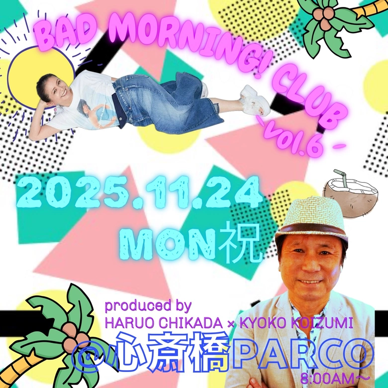 近田春夫×小泉今日子がプロデュースする大人の朝活イベント「BAD MORNING! CLUB」が大阪・心斎橋パルコにやってくる!関西エリア初開催となる今回は、パルコ開業5周年のメモリアルイヤーとのコラボレーション!