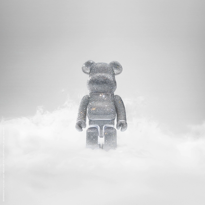 ・<BE@RBRICK>:14,500粒のフラットバッククリスタルで全身を装飾したアート性の高いフィギュア。