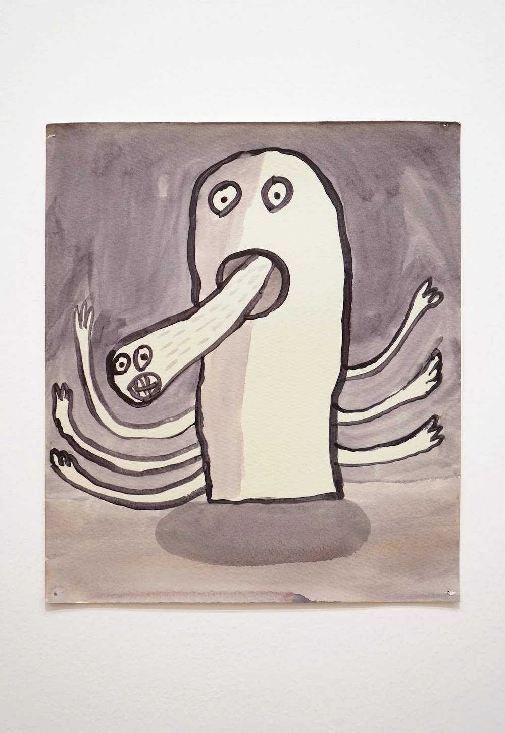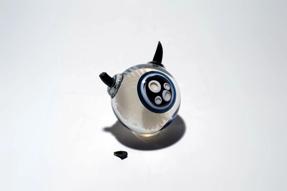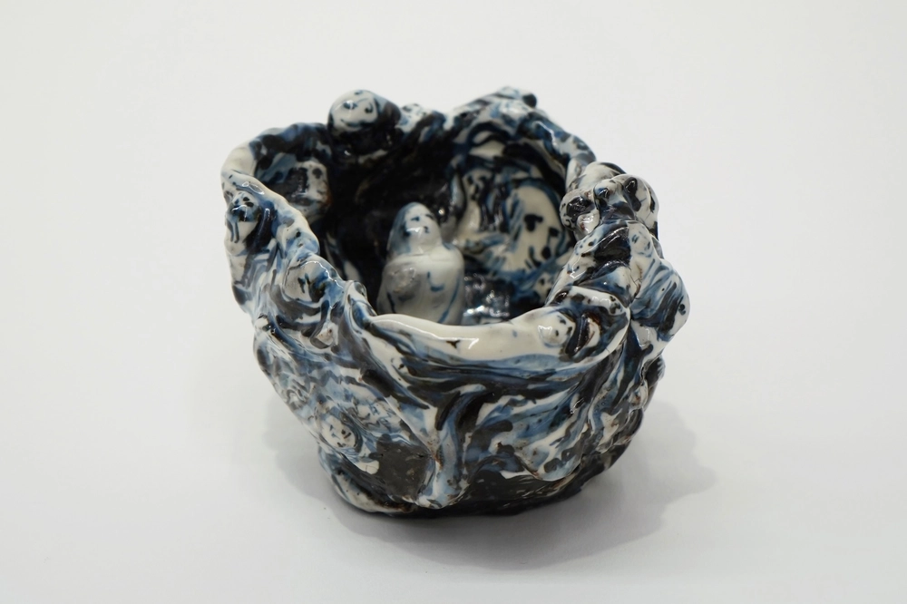 現在展示されているのは、竹谷満による静謐な水彩画《Untitled》(2011)をはじめ、重野克明の《逆流のエロス オモテナシ》(2019)、中村ケンゴの《ジャパニーズ・フロッグ》(2019)など、多彩なジャンルの小作品たち。さらに、土屋仁応のレジン作品《Kitten 01》(2025)、蝸牛あやによる繊細な刺繍《Author》(2025)、田中福男のガラス作品《Oni-chan Pien 角折れ》(2025)も並ぶなど、表現も素材も豊かなラインナップが揃う。