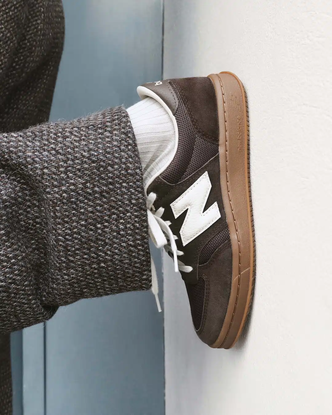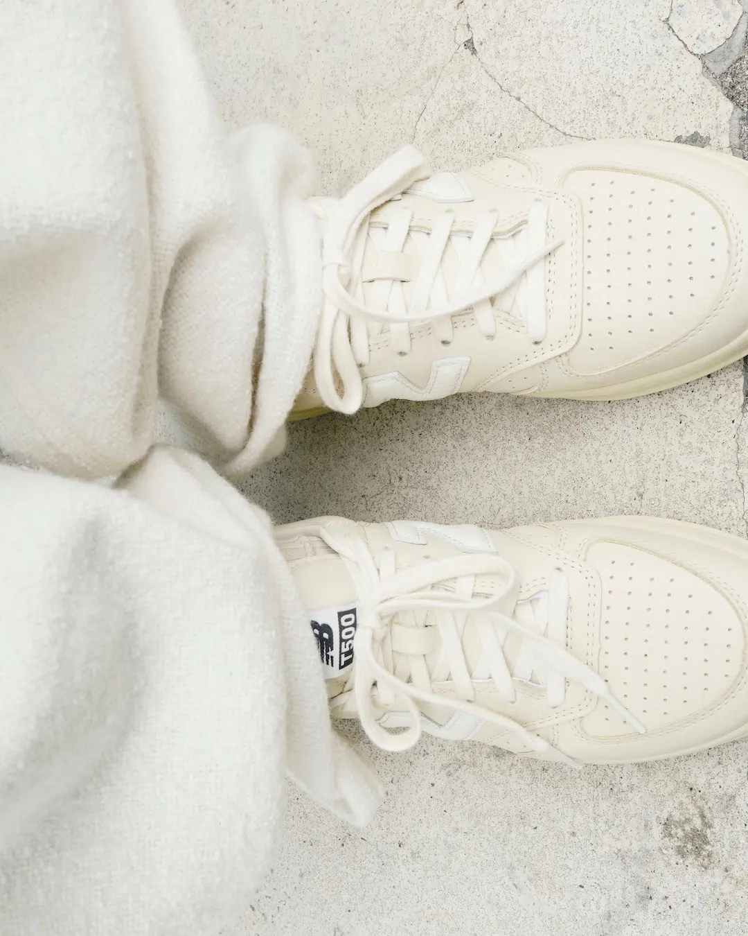 今回のコラボレーションでは、1982年に誕生した<New Balance>のクラシックモデルT500を、<AURALEE>ならではの視点で素材や色合い、ディテールをアップデート。テニスシューズをルーツに持つT500に、長年履きこまれたかのようなヴィンテージ感を持たせた2色が登場する。