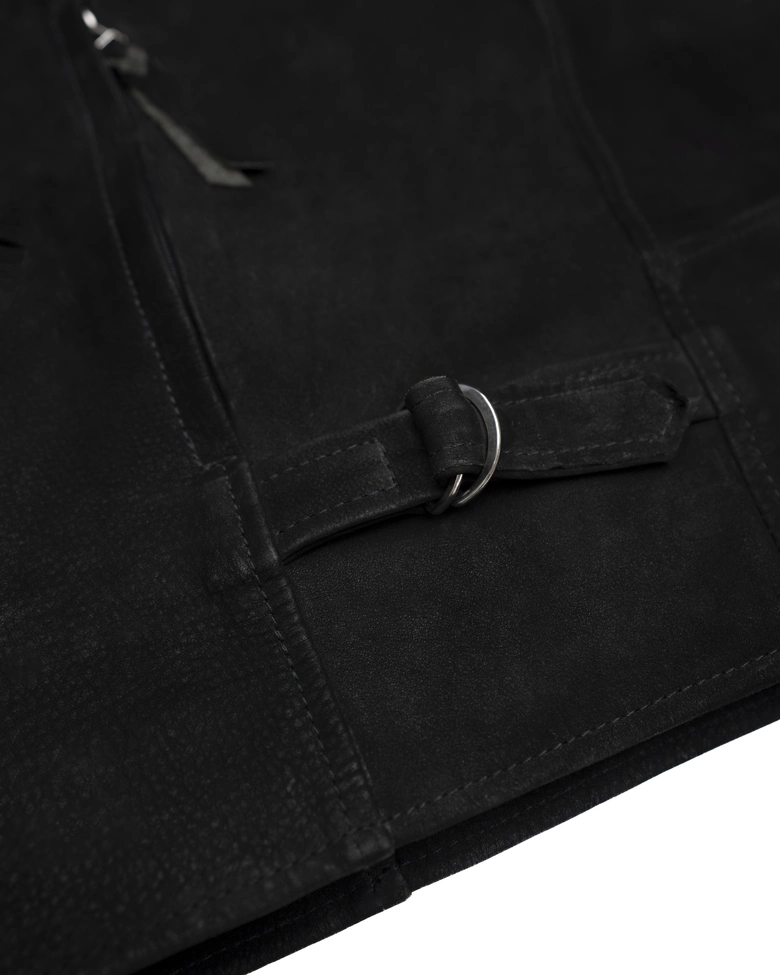 さらに、シンプルなデザインを保ちつつ、ウェストポケットに加えサイドシームを利用したウォームポケットを追加するなど、機能性も向上。素材にはヌバックのカウレザーを使用し、しっとりとした手触りと銀面に施された短く繊細な起毛によって、上品な表情が際立っている。