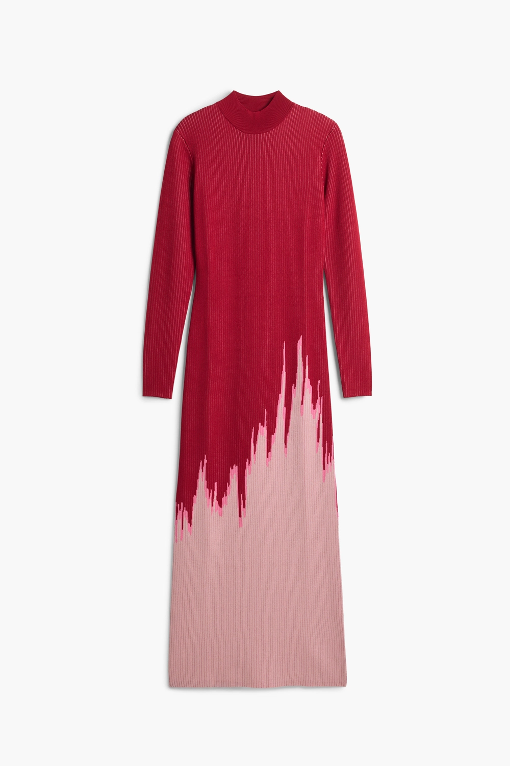 ・カラー・プリント:静けさを象徴するモノトーンと、情熱的なレッド・ピンクが対比。“フェザー”プリントは軽やかさと自由の象徴