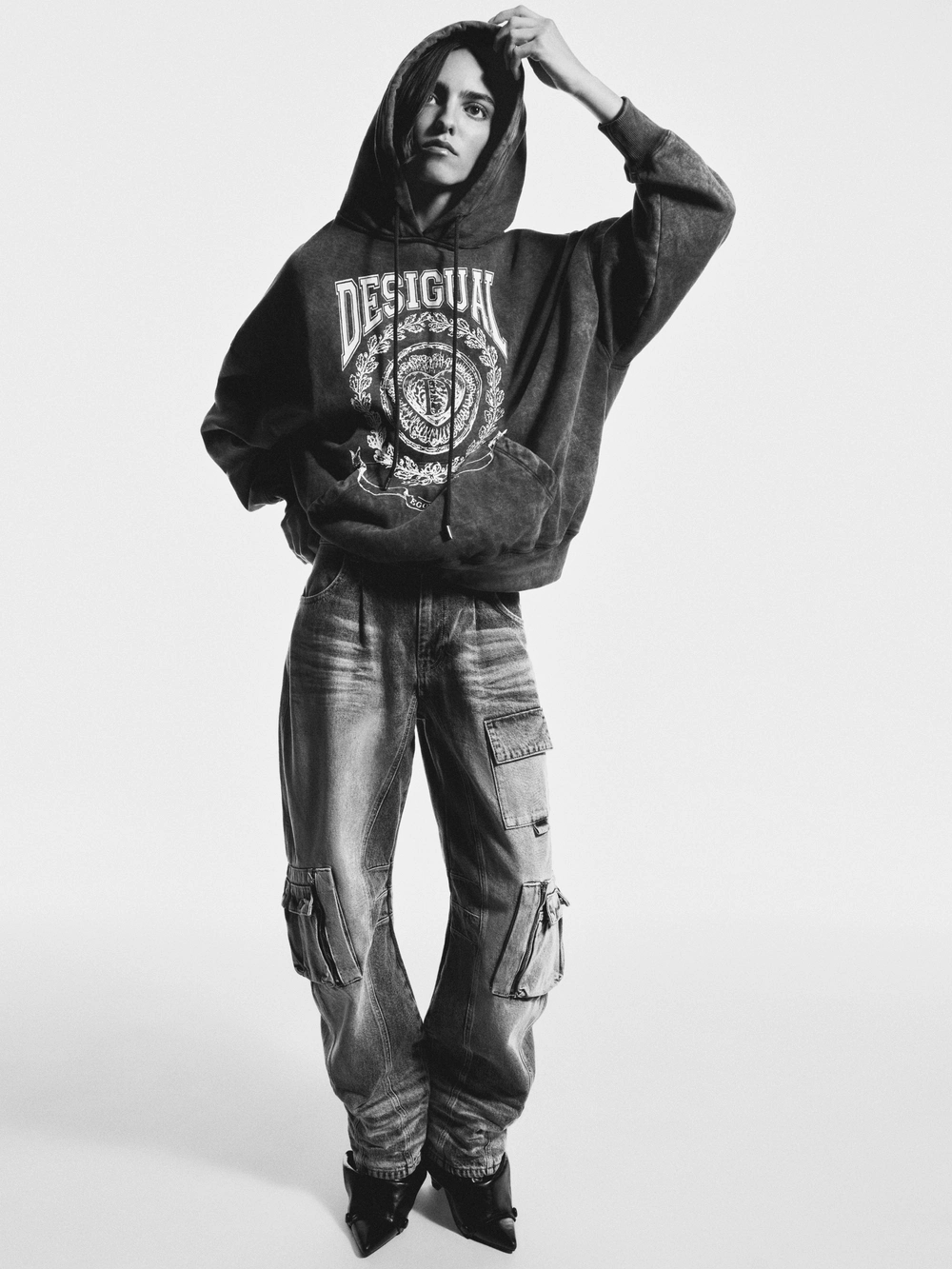 本コレクションは、<Desigual>と<EGONLAB>が持つ「都市のコントロールされたカオス」と「動きの中の静けさ」という二面性の融合から着想。単なるファッションではなく、着る人の“態度”を表現する服としてデザインされている。両ブランドは、一見異なる表現手法を持ちながらも、共通する「信念」「姿勢」「大胆さ」によって強く結びついており、この協業は<Desigual>が次世代を担うクリエイターを支援する姿勢の表れでもある。