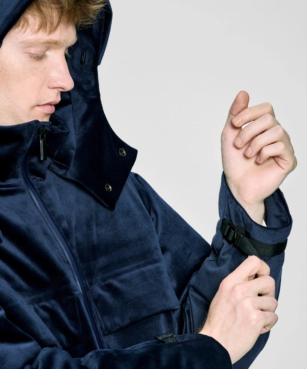 注目は、艶やかな風合いの「SYNTHETIC VELOUR(シンセティック・ベロア)」を採用した防水ダウンジャケットや、軽量かつ保温性に優れるチューブ構造のダウンパックを搭載した2 in 1システム対応のジャケットとベスト。着脱可能なフードやアジャスタブルなディテールにより、スタイルと機能の両立を実現する。