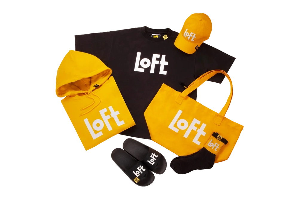今回の企画では、ロフトのコーポレートアイデンティティでもあるロゴをモチーフに、アパレルから雑貨まで全6カテゴリー・16種のアイテムを制作。それぞれブラックやイエローなどのブランドカラーで展開され、モダンかつユニークな世界観に仕上がっている。