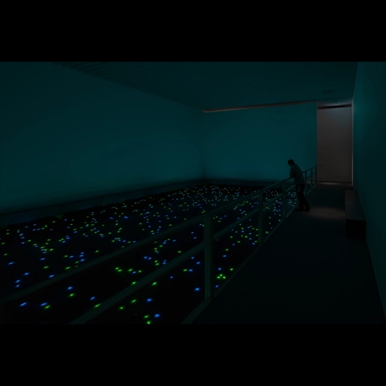 「時の海 ‒ 東北」は、2011年の東日本大震災をきっかけに宮島が立ち上げた共同プロジェクト。犠牲者への鎮魂と記憶の継承、そして未来への希望を込めて、東北の3,000人の参加者とともにLEDの光で“時”を刻む《Sea of Time – TOHOKU》を制作している。光はそれぞれ異なる速度で明滅しながらも、決して“0”を示さない——命がつながり続けることを象徴する作品だ。
