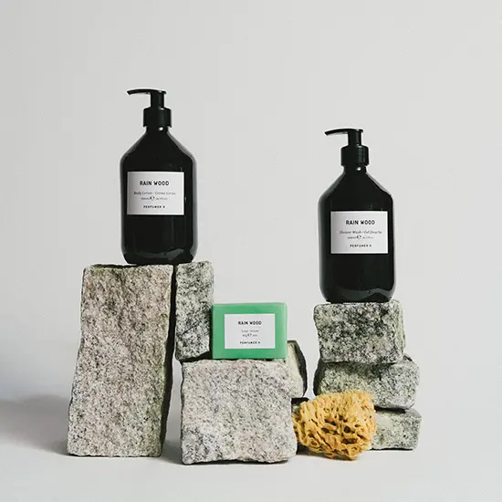 ハンドウォッシュ、シャワーウォッシュ、ソープ、ボディローションの4製品で構成されており、ブランドを象徴する香りのひとつである「レインウッド」の香りが全製品に採用されている。
