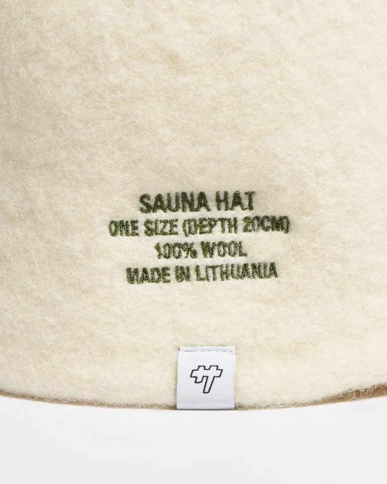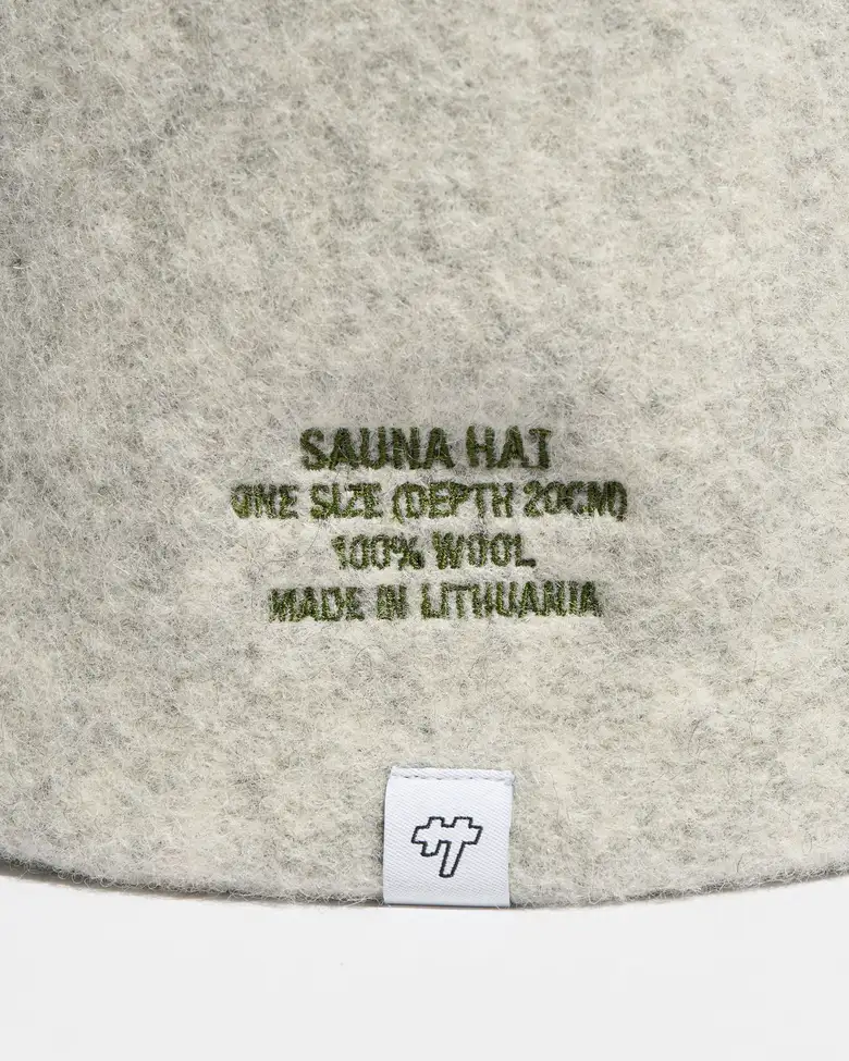 リトアニア産ウール100%のサウナハット。天然素材ならではの優れた断熱性で、サウナ室の高温から頭部や髪をしっかりと守り、吸湿性にも優れているため蒸れにくく、長時間の使用でも快適。